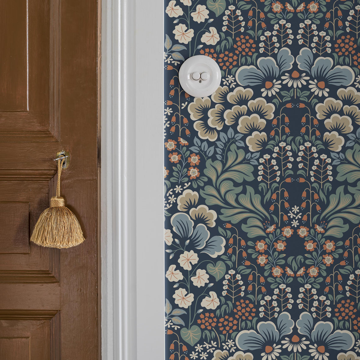 Use:A stylized depiction of a Swedish meadow in bloom, Bor?stapeter's Blomstervall wallpaper is a surface-printed design that puts a contemporary twist on classic Arts & Crafts style. A mirrored effect gives the pattern a calm, harmonious character. This product is FSC Certified. Available in North America exclusively through Schumacher.