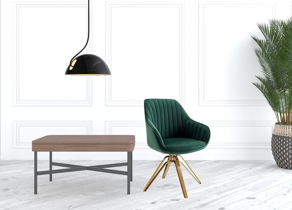 23" Green Velvet And Gold Swivel Arm Chair