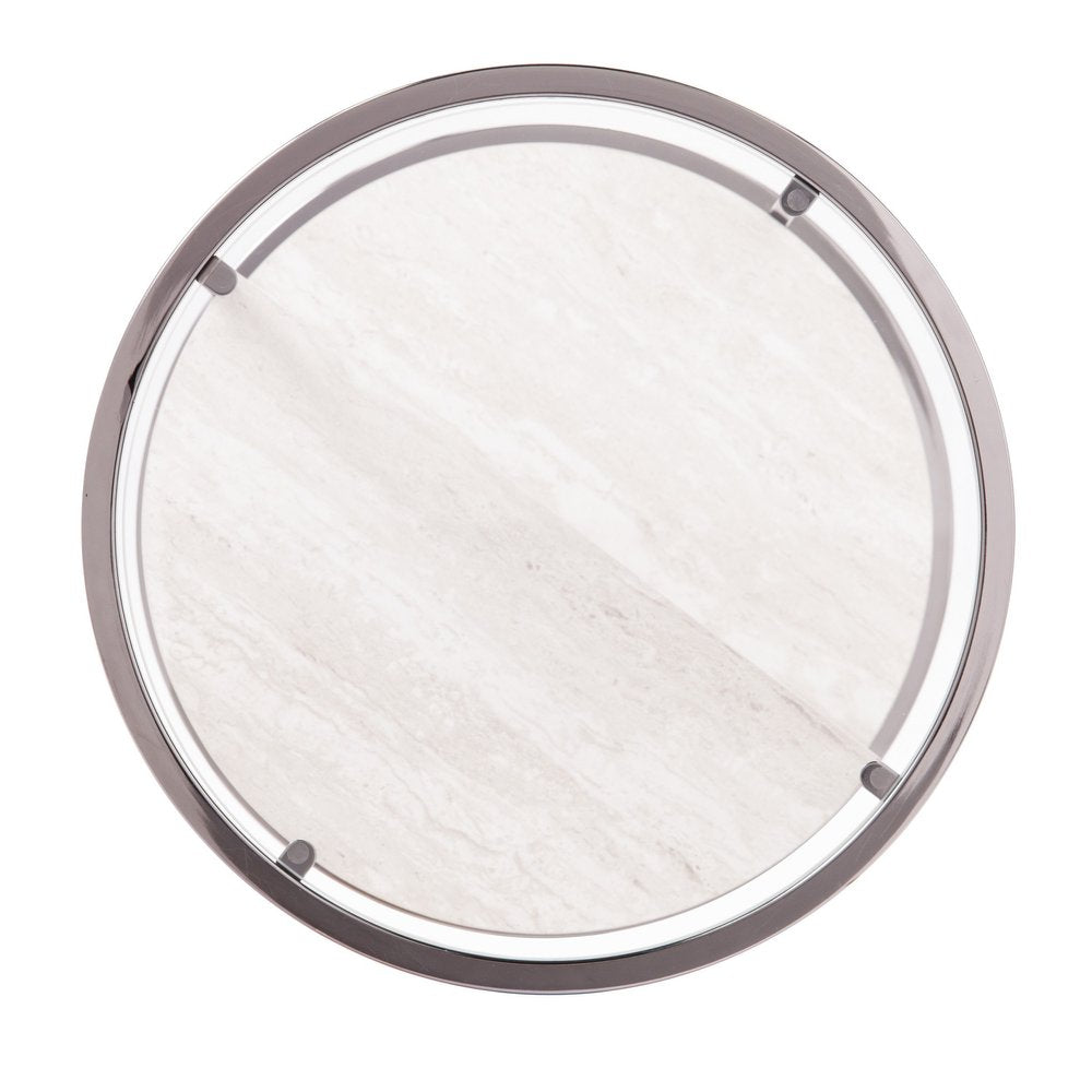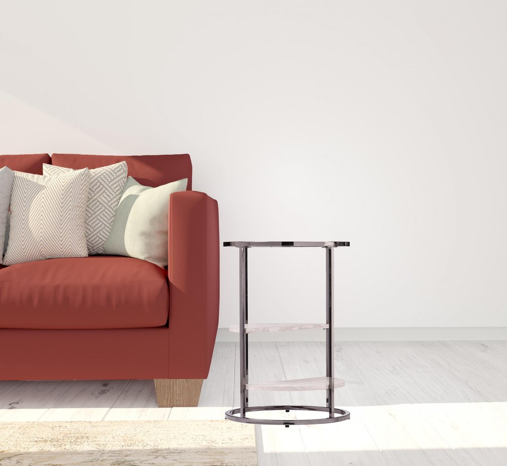 24" Black Metal Glass And Faux Marble Round End Table With Two Shelves