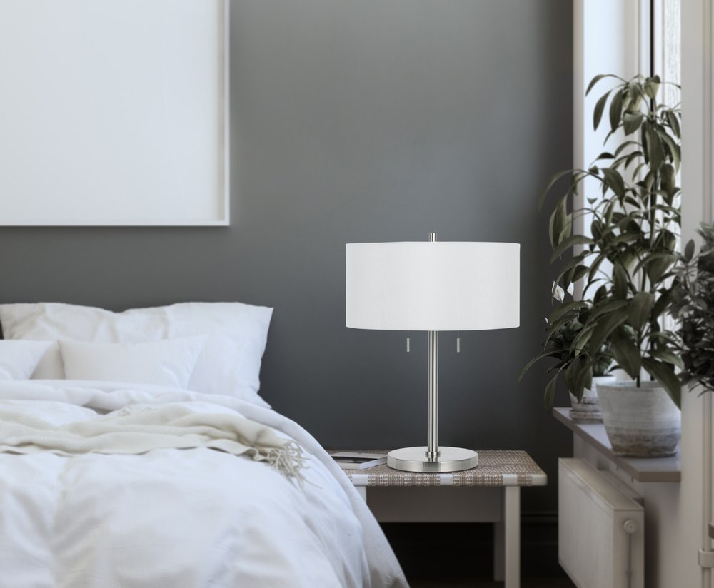 24" Nickel Metal Two Light Table Lamp With White Empire Shade