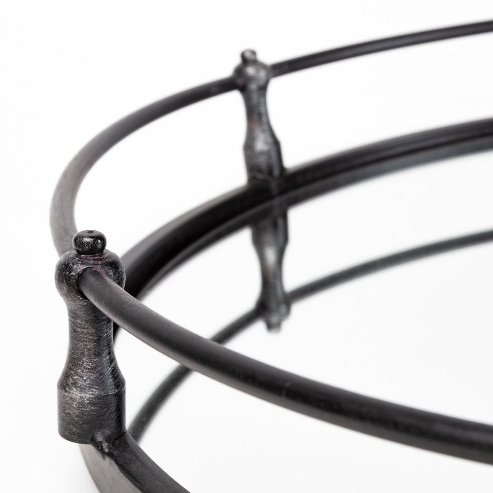 24" Silver Round Metal Indoor Outdoor Tray With Handles