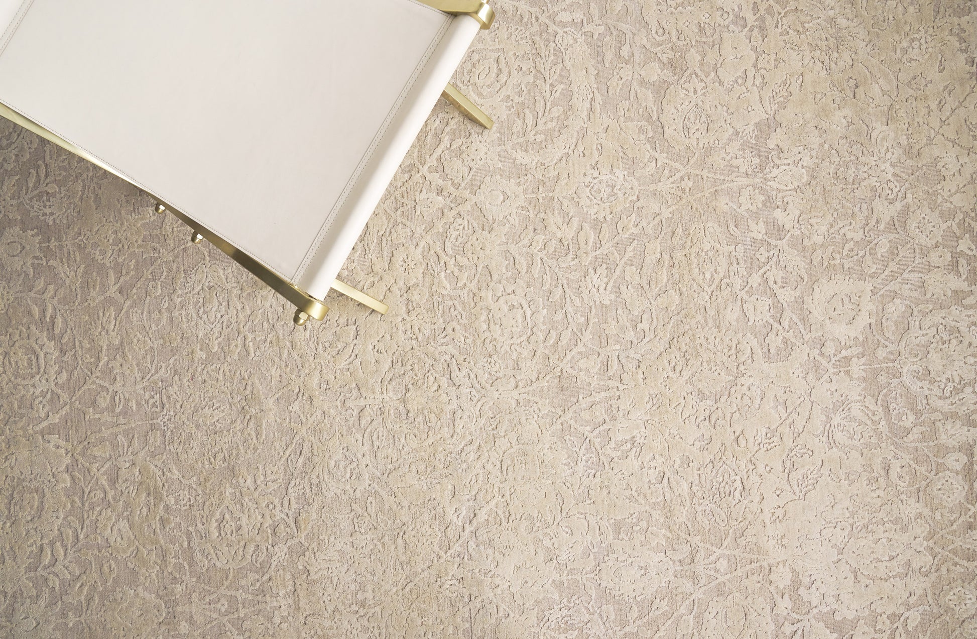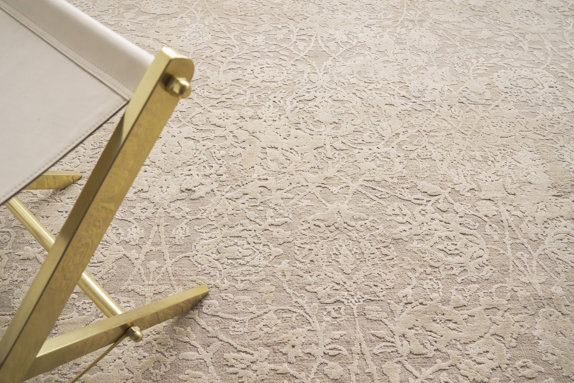 Use:The Meena rug reinvents traditional motifs through a contemporary color palette and unique play in texture. Stylized florals and vines elegantly weave across this hand knotted wool and silk rug. An understated addition to both traditional and contemporary interiors.