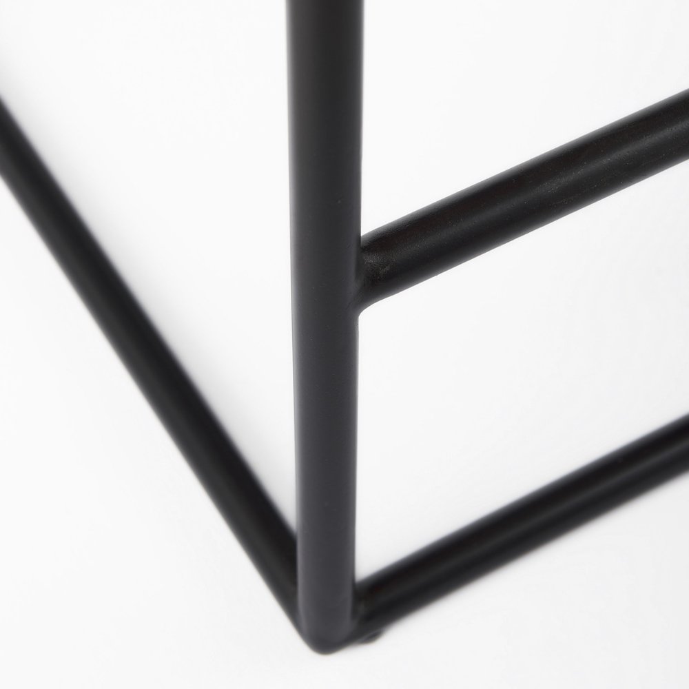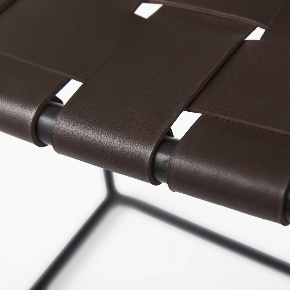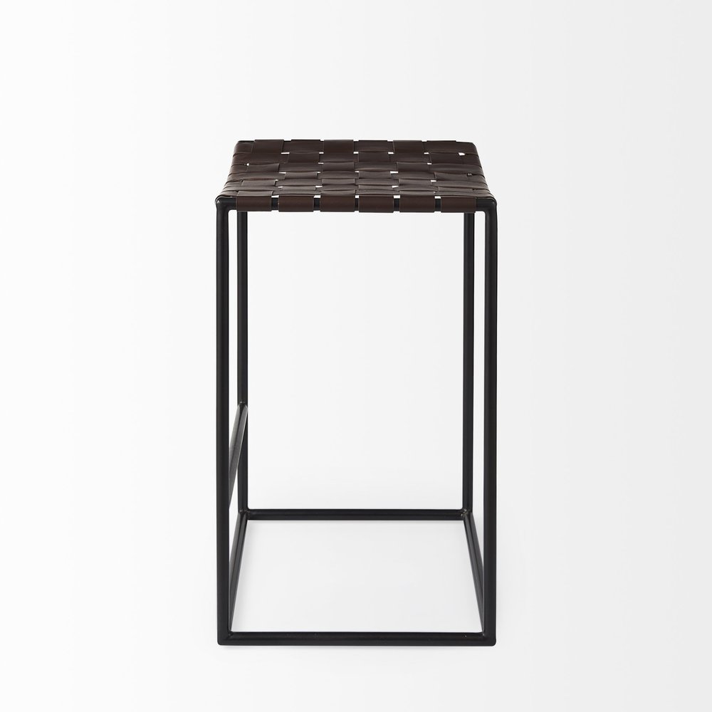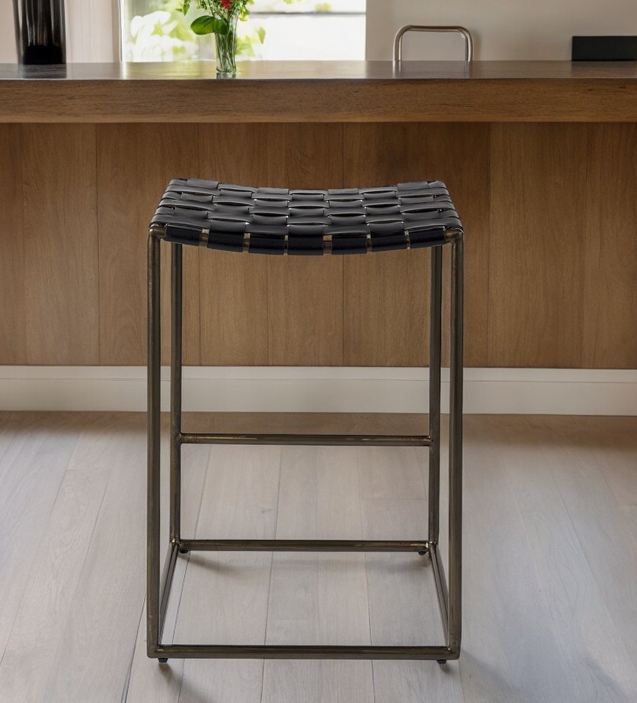 26" Brown And Black Leather And Iron Backless Counter Height Bar Chair