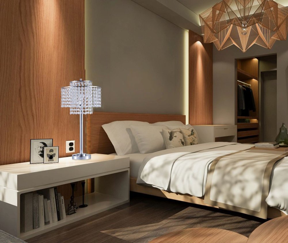26" Silver Glam Two Tier Chandelier USB Table Lamp