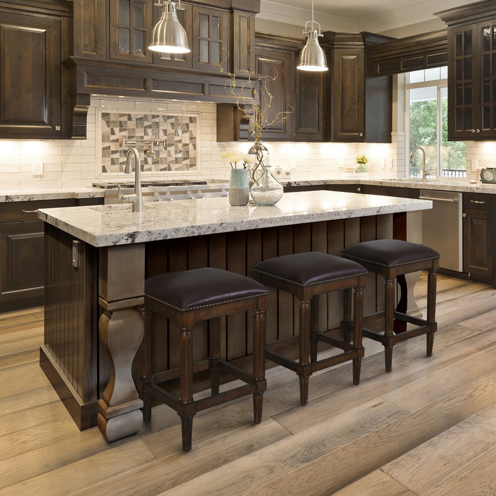 27" Brown And Dark Brown Solid Wood Backless Counter Height Bar Chair