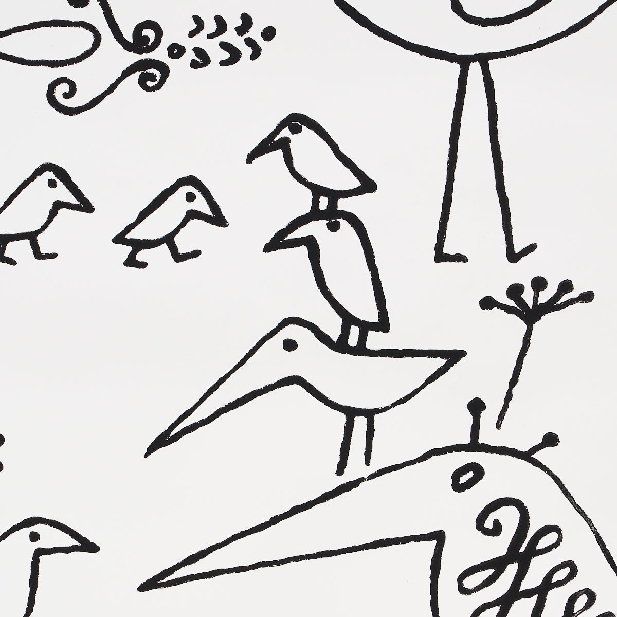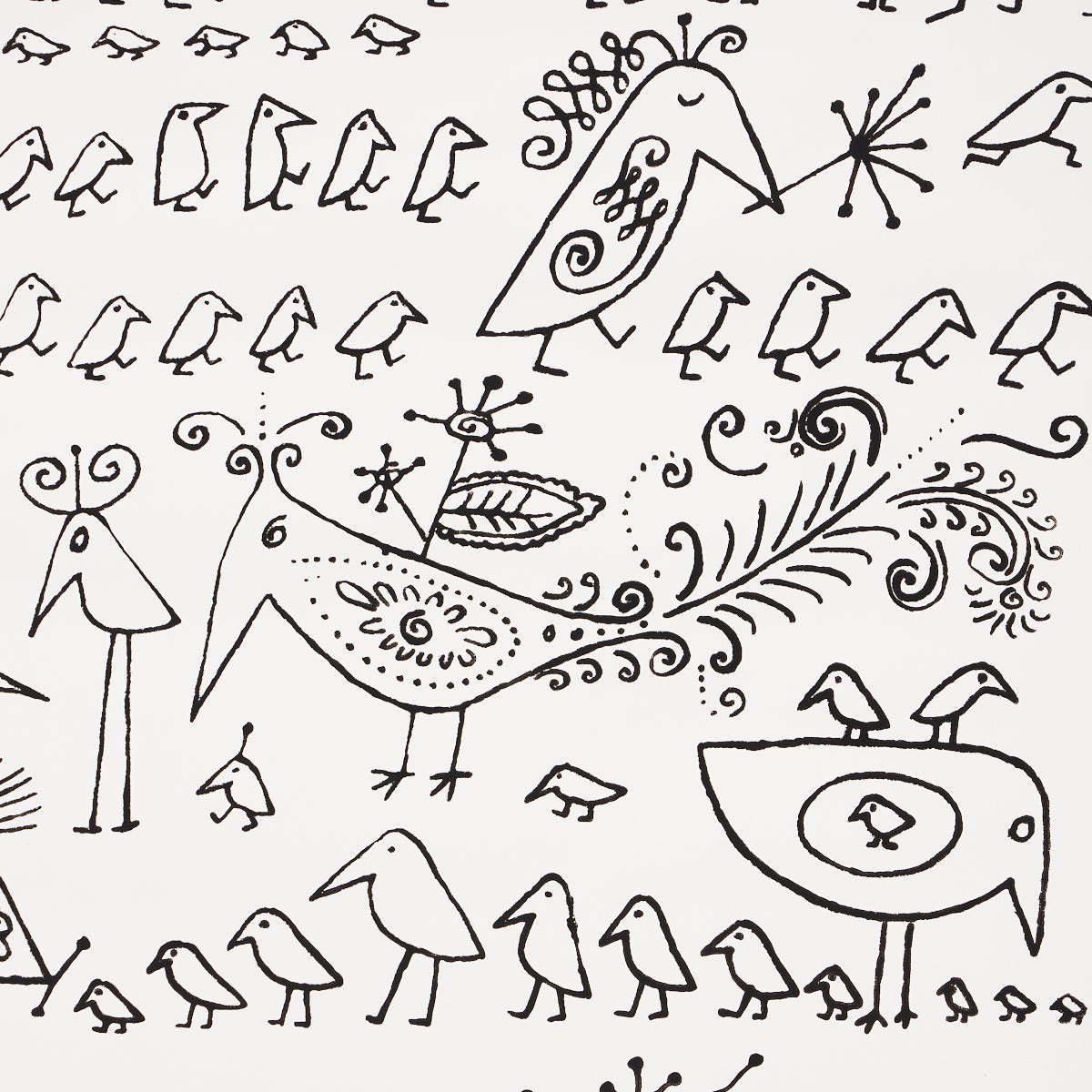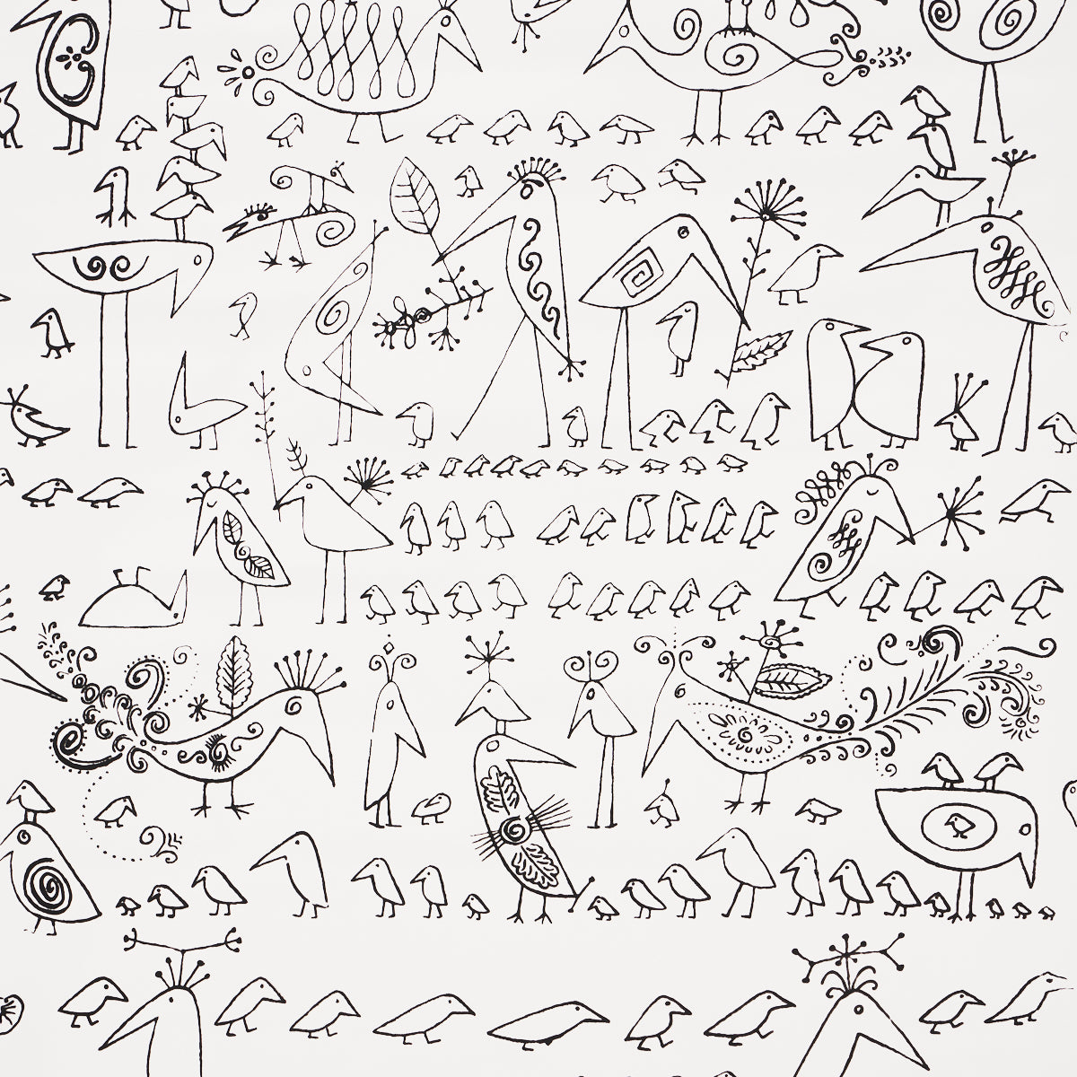 SCHUMACHER WALLCOVERING EXUBERANT PRINTS AVIARY BLACK ON WHITE - 2705510