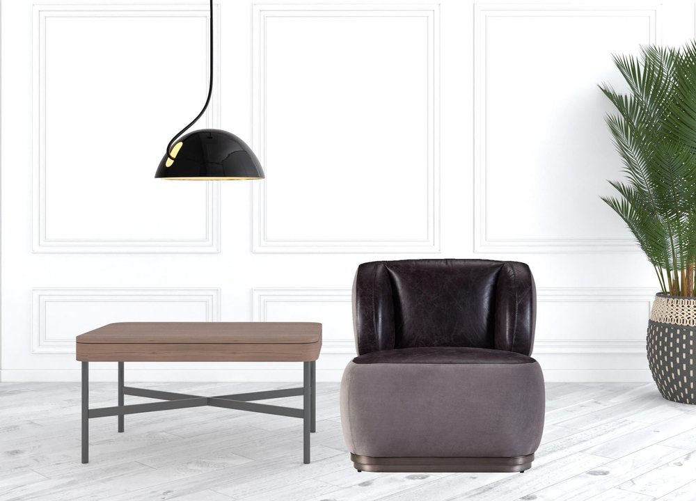 29" Slate Gray and Brown Velvet Slipper Chair