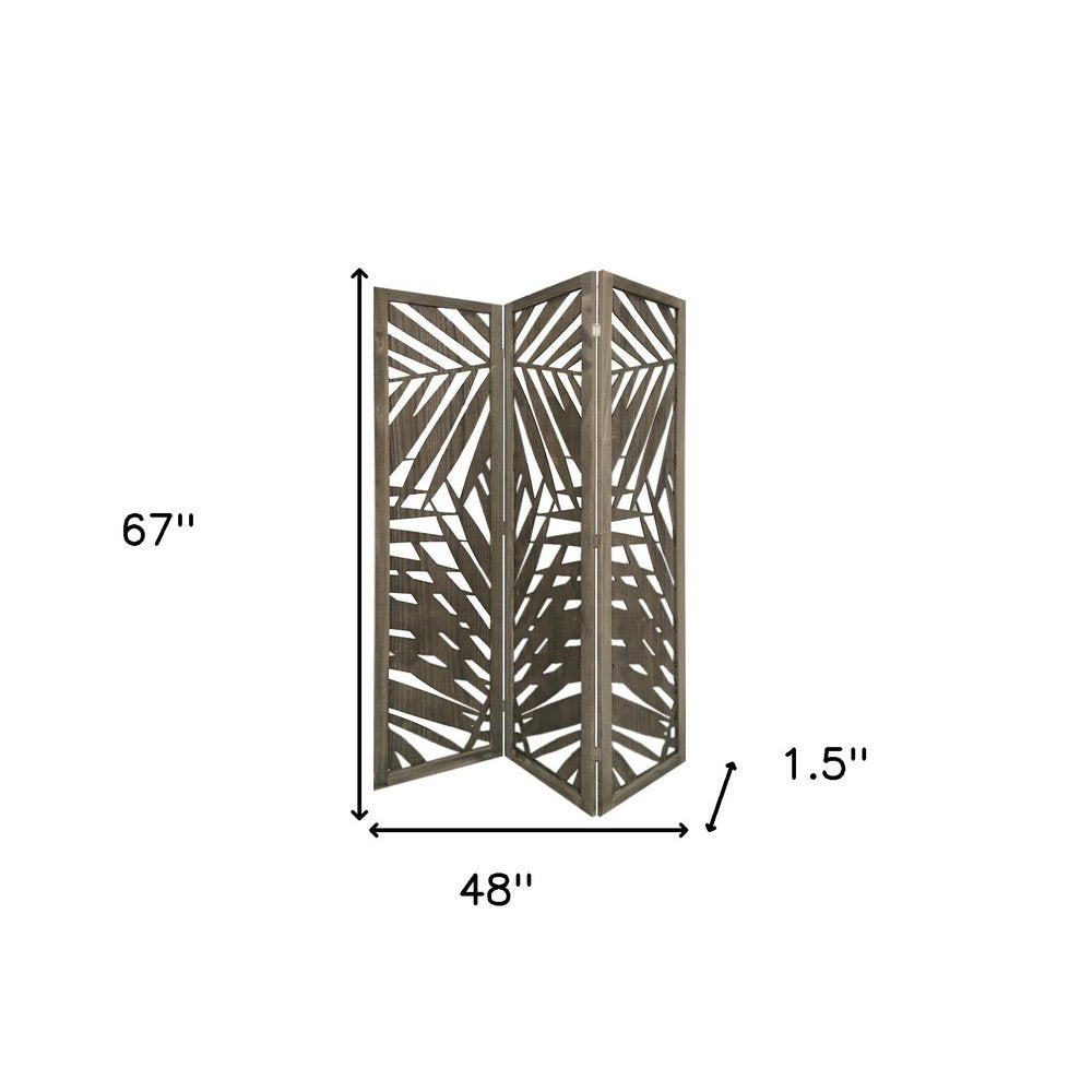 67" Gray Solid WoodFolding Three Panel Screen Room Divider