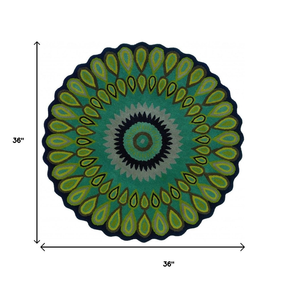 3' Green Wool Hand Tufted Round Rug