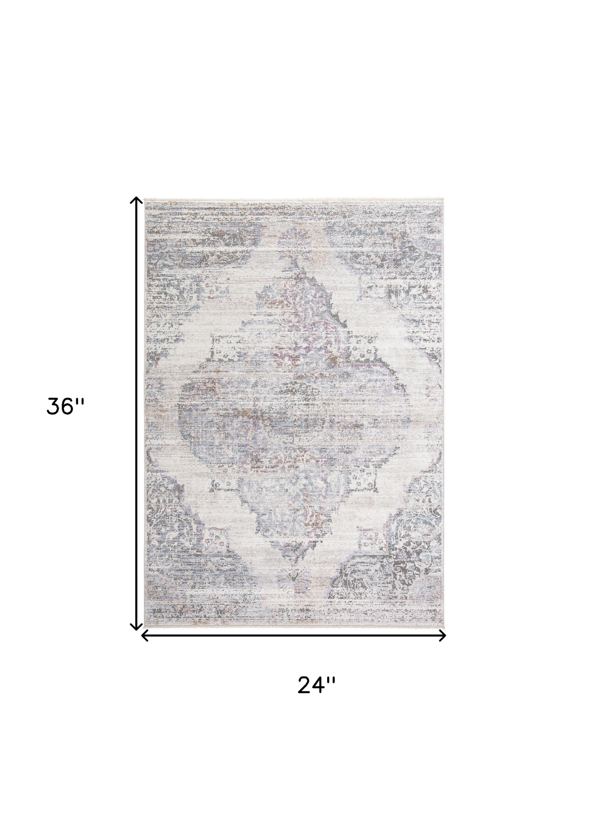 10' X 14' Ivory Gray And Pink Abstract Distressed Area Rug With Fringe