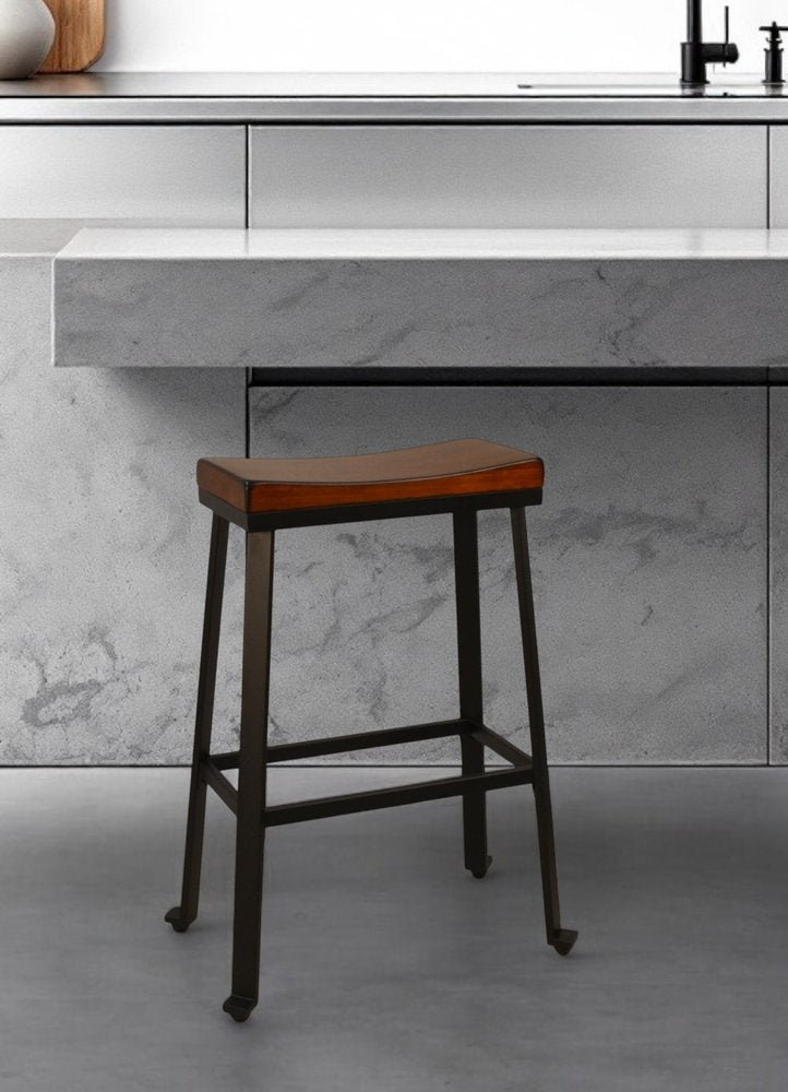30" Chestnut And Black Steel Backless Bar Height Bar Chair