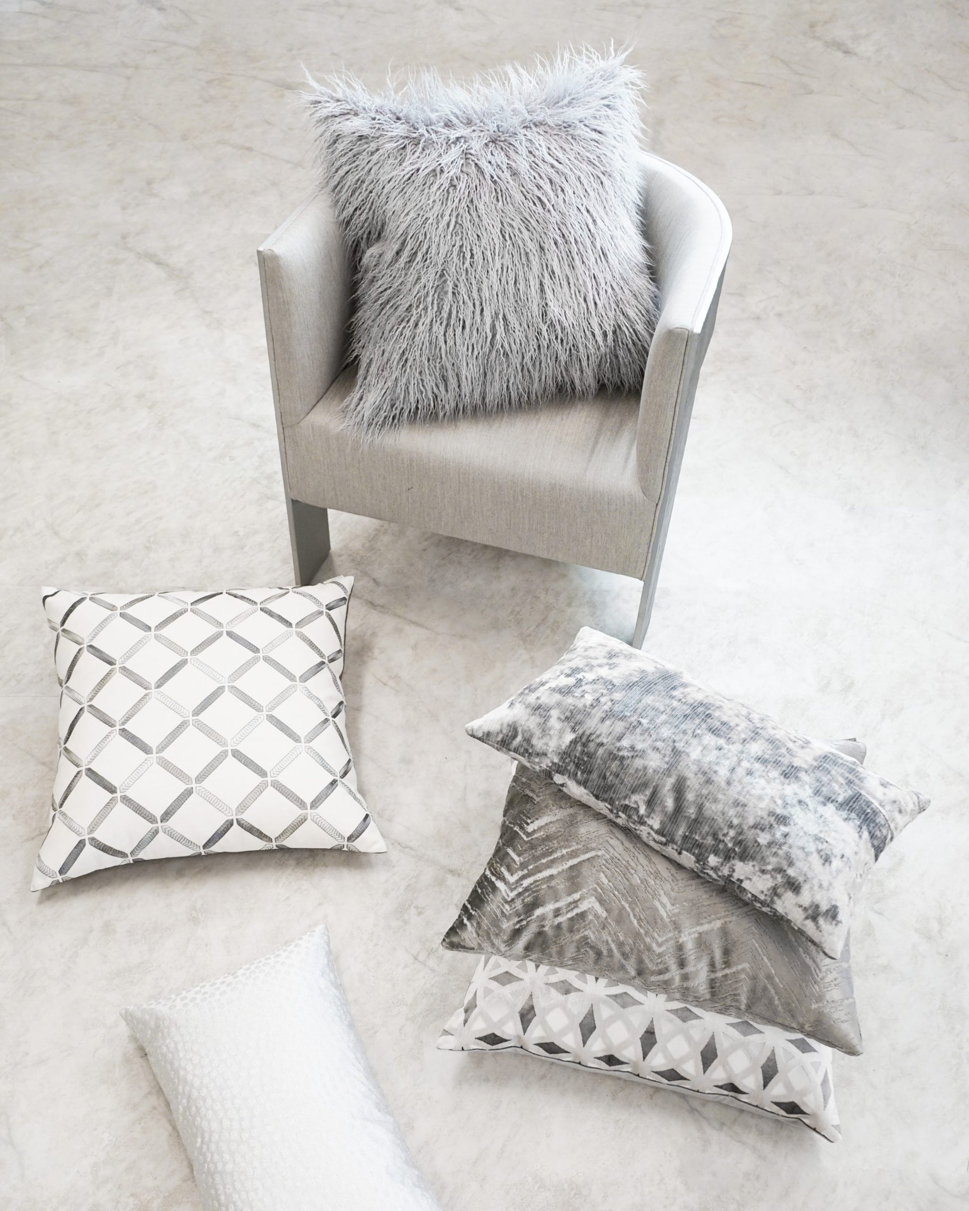 D.V. KAP HOME 24" x 24" Granville Pillow - Silver Embroidery, Transitional, Geometric - 3089-S-2424