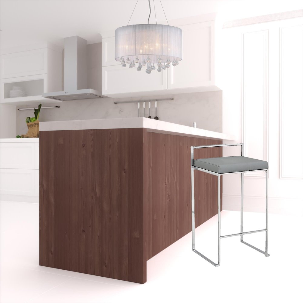 35" Gray And Silver Faux Leather And Steel Low Back Bar Height Bar Chair