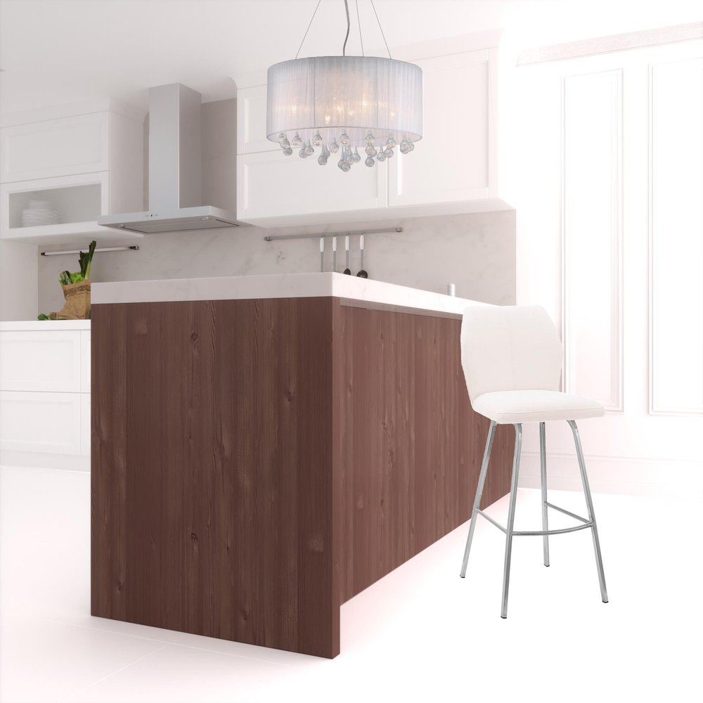 26" White And Silver Faux Leather And Iron Counter Height Bar Chair