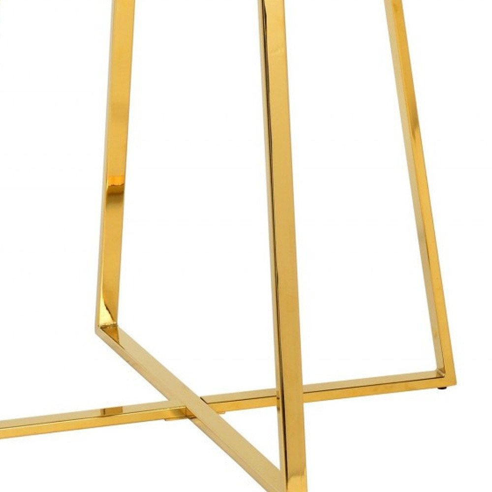 39" White And Gold Rounded Iron Pedestal Base Dining Table