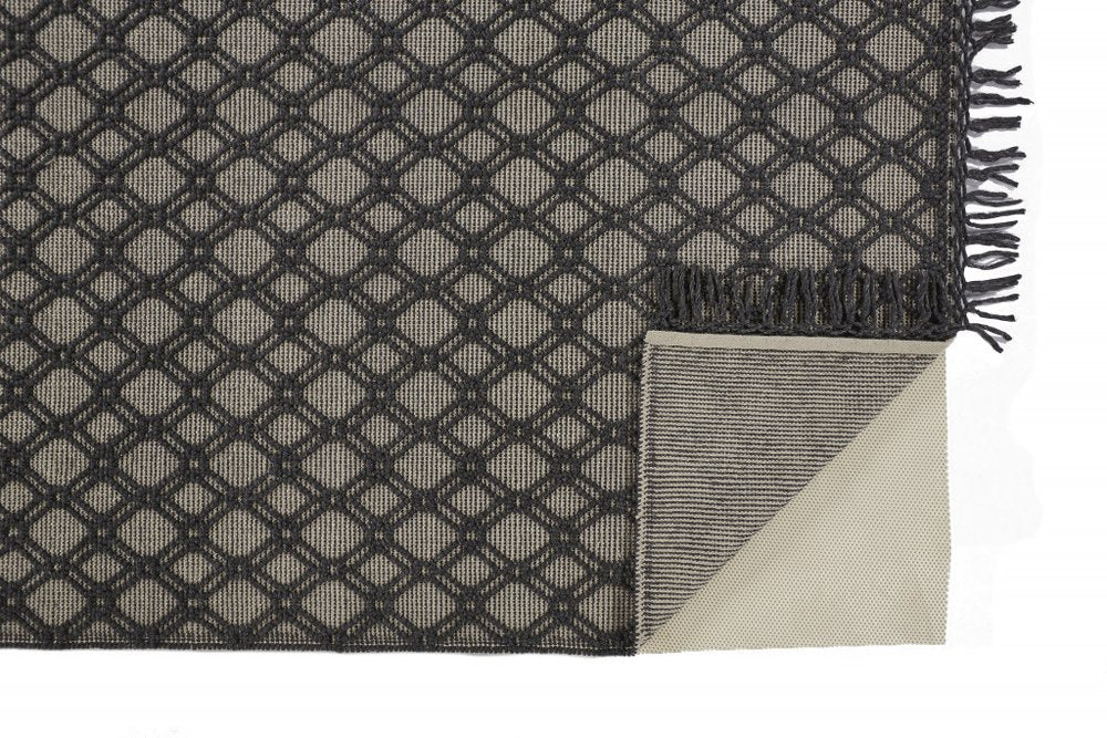 5' X 8' Black And Ivory Wool Geometric Hand Woven Area Rug With Fringe