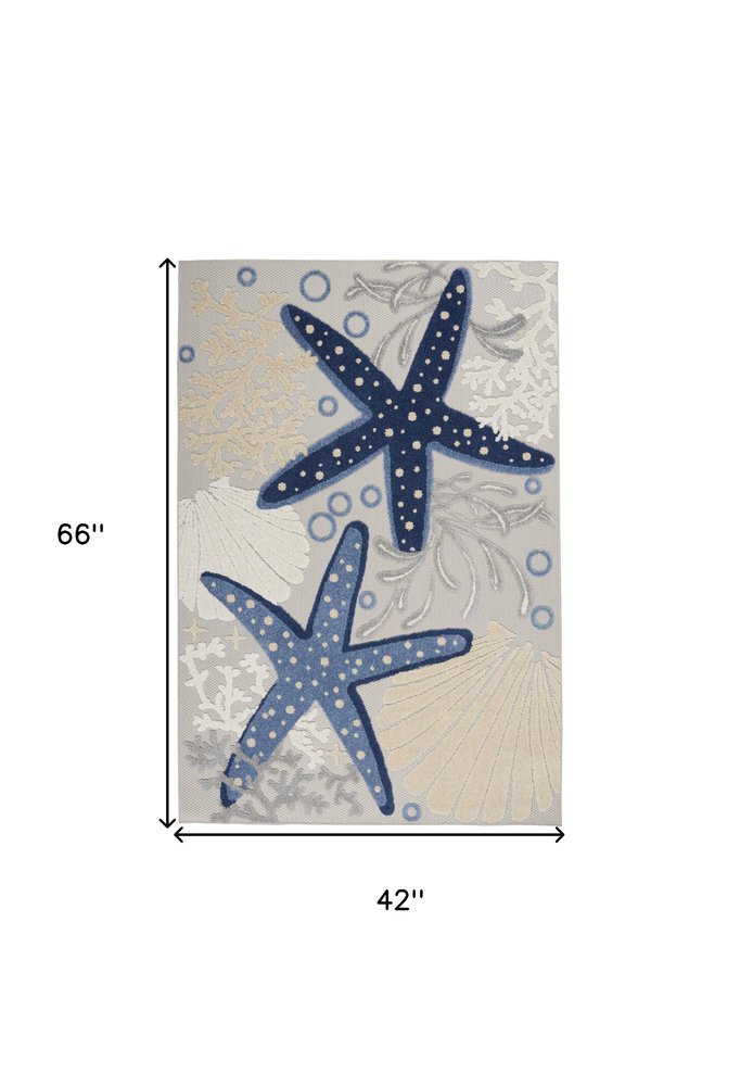 4' X 6' Blue And Gray Indoor Outdoor Area Rug
