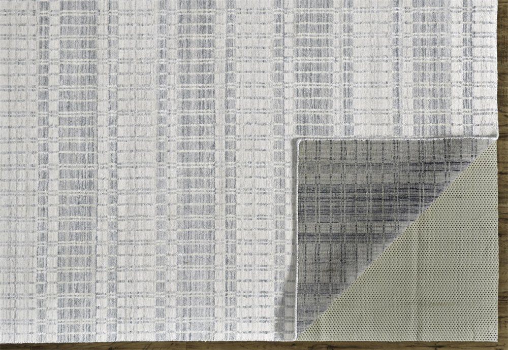 7' X 9' Ivory And Blue Striped Hand Woven Area Rug