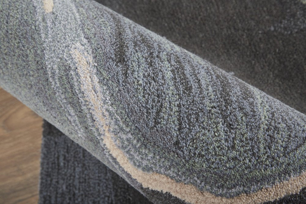 4' X 6' Blue and Black Wool Abstract Hand Tufted Area Rug