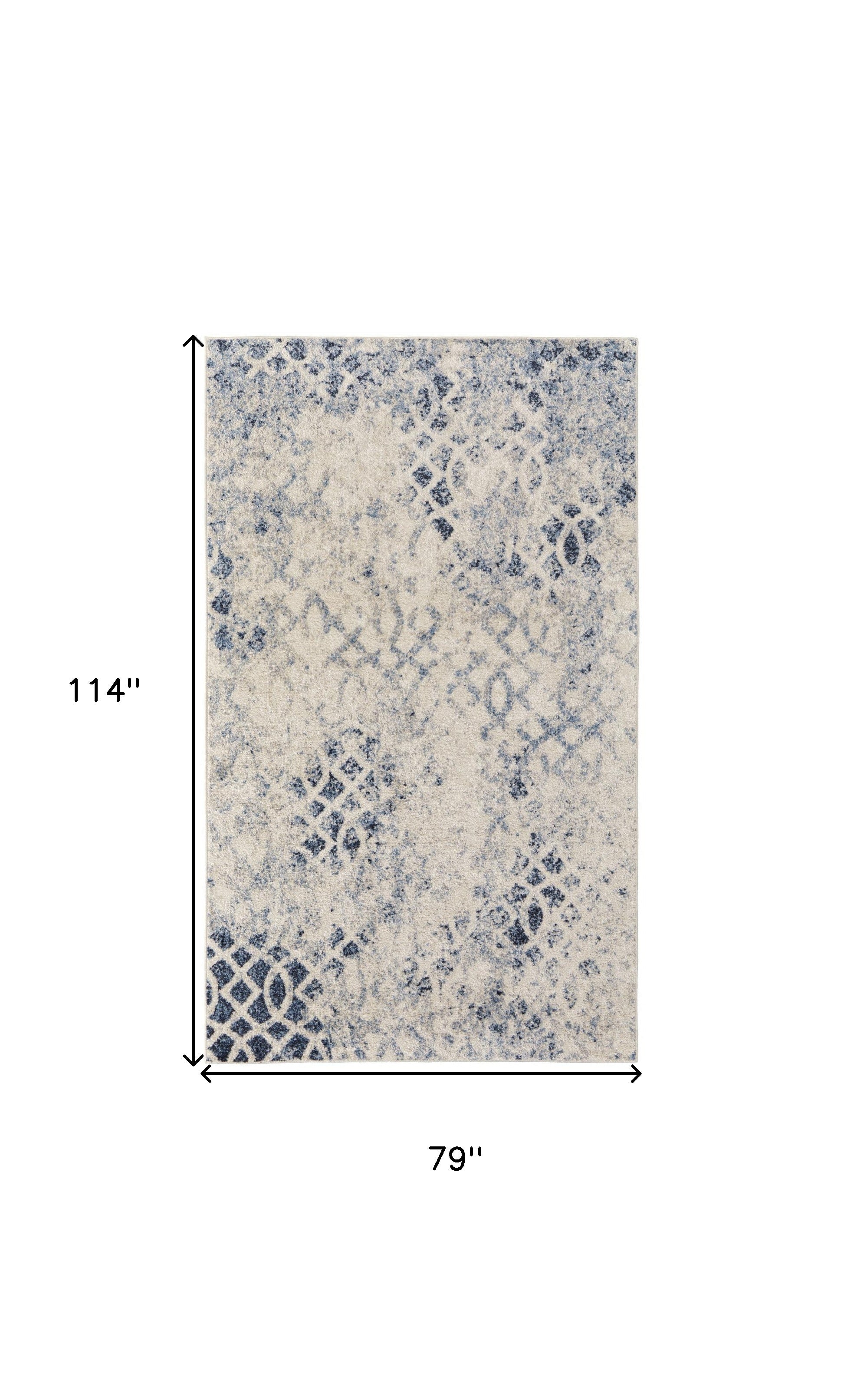7' X 10' Ivory And Blue Abstract Power Loom Distressed Area Rug