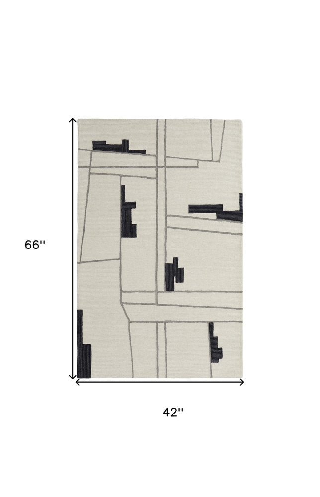 4' X 6' Gray and Ivory Wool Abstract Hand Tufted Area Rug