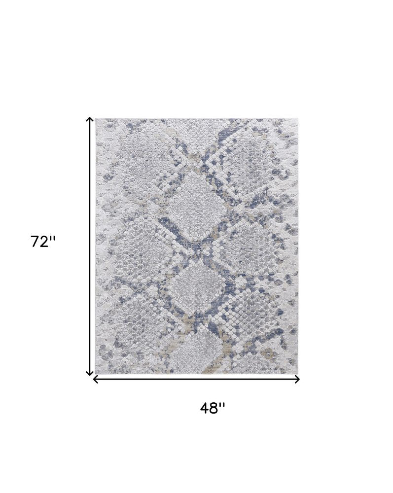 4' X 6' Gray Silver And Blue Geometric Distressed Area Rug