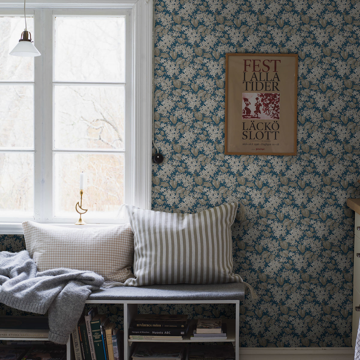 Use:Dense with flowers and foliage, Aratorp in blue is an enchanting allover pattern with vintage charm. This lush small-scale floral wallpaper has extraordinary dimension and creates a stunning sea of lilacs on a focal wall or around an entire room. Designed by Bor?stapeter and distributed exclusively by Schumacher in North America.