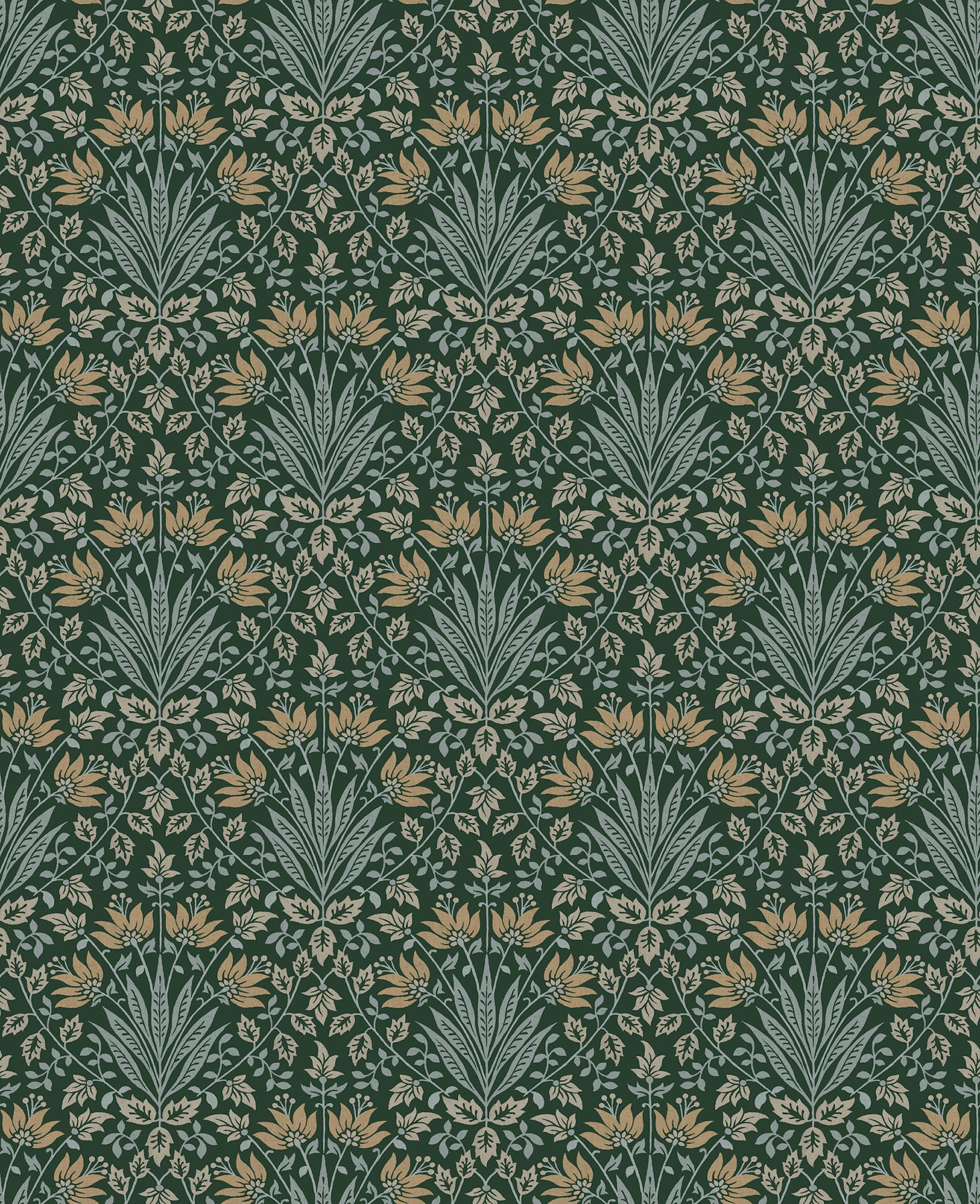 Use:Inspired by the Arts & Crafts movement, this rich floral damask features groupings of tulips framed and connected by leafy vines. Featured here in a verdant palette of forest green, ochre, light blue, and beige. Woodbury is an unpasted, non woven wallpaper measuring 20.5 inches wide by 33 feet long, covering approximately About 56.4 square feet square feet per roll. Part of the Chris Loves Julia x A-Street Prints collection; Unpasted non woven material; 8.26-in repeat, straight match; Washable and strippable; 20.5-in by 33-ft long roll; Covers about 56.4 square feet