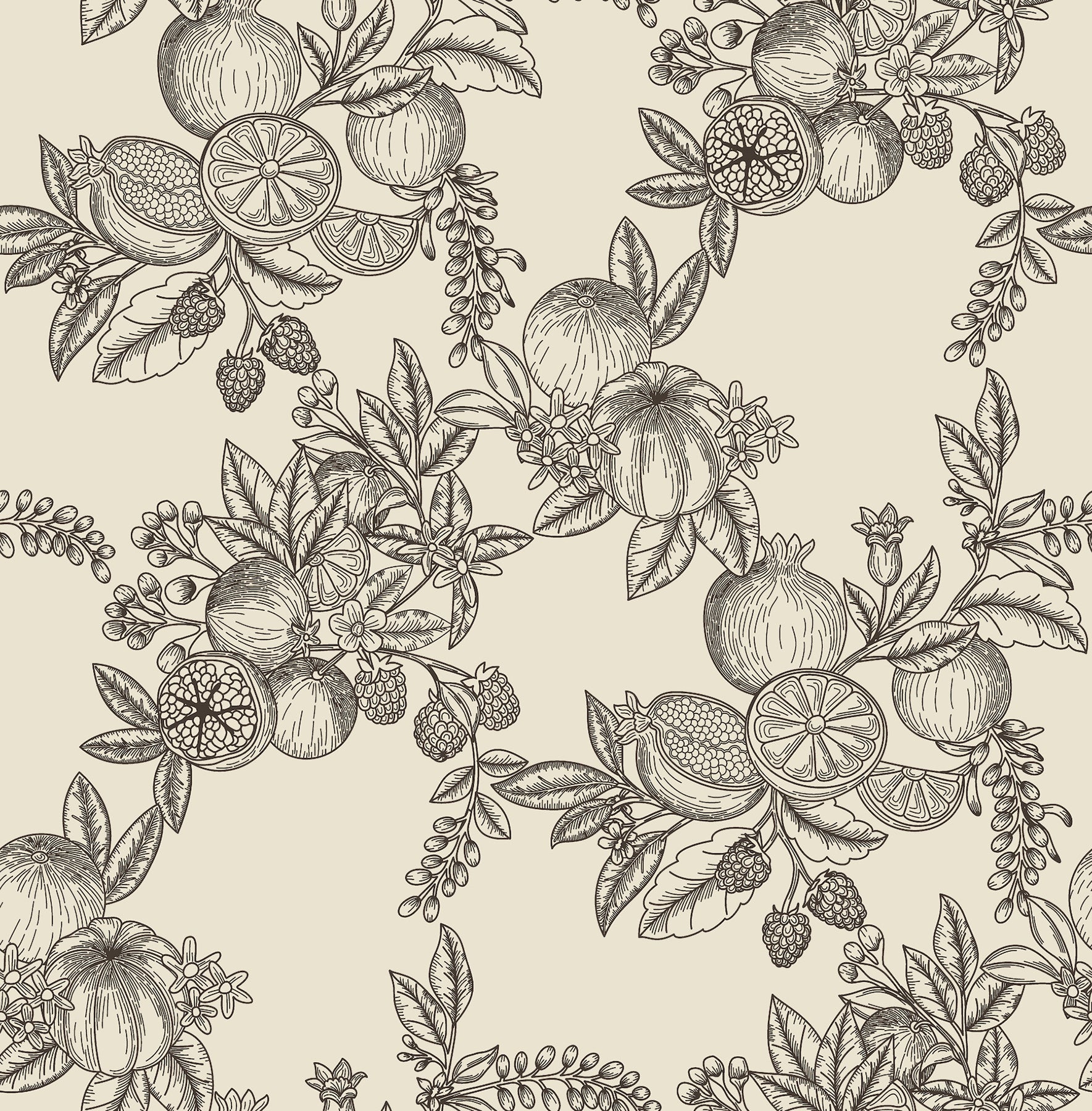 Use:A modern reimagination of the classic toile, this illustrative design features ripe pomegranates, citrus, and raspberries along flowering branches and vines. The details are inked in black against a cream backdrop. Gerty is an unpasted, non woven wallpaper measuring 20.5 inches wide by 33 feet long, covering approximately About 56.4 square feet square feet per roll. Part of the Chris Loves Julia x A-Street Prints collection; Unpasted non woven material; 20.9-in repeat, straight match; Washable and strippable; 20.5-in by 33-ft long roll; Covers about 56.4 square feet