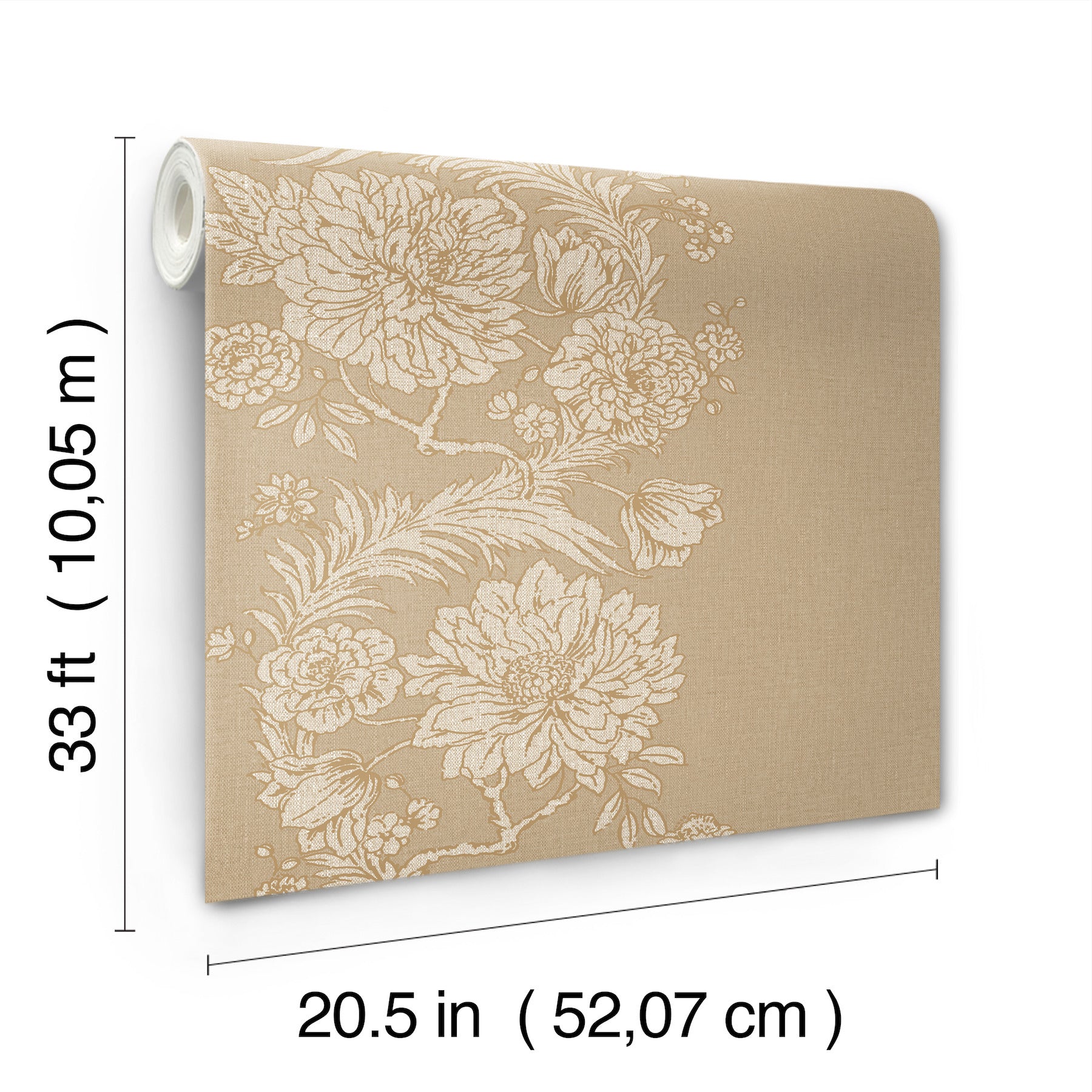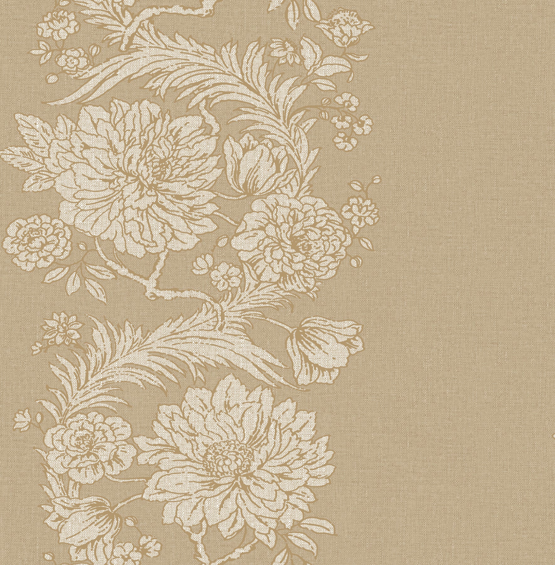 Use:Feathery ferns twine together with voluminous blossoms to form curving columns rich in botanical beauty. The flora is inked in cream and metallic gold against a beige backdrop, the entire design enriched with linen's woven detailing. Gisela is an unpasted, non woven wallpaper measuring 20.5 inches wide by 33 feet long, covering approximately About 56.4 square feet square feet per roll. Part of the Chris Loves Julia x A-Street Prints collection; Unpasted non woven material; 20.9-in repeat, drop match; Washable and strippable; 20.5-in by 33-ft long roll; Covers about 56.4 square feet