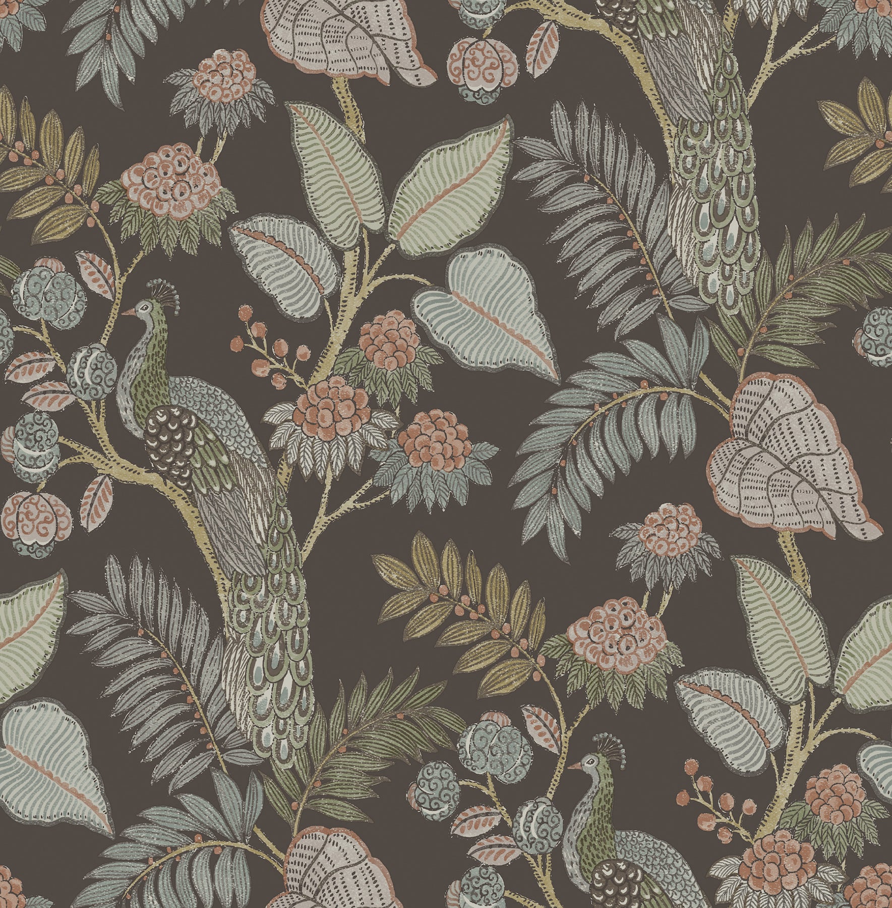 Pattern: 4173-27647 / Geneva Chocolate Peacock Paradise Wallpaper