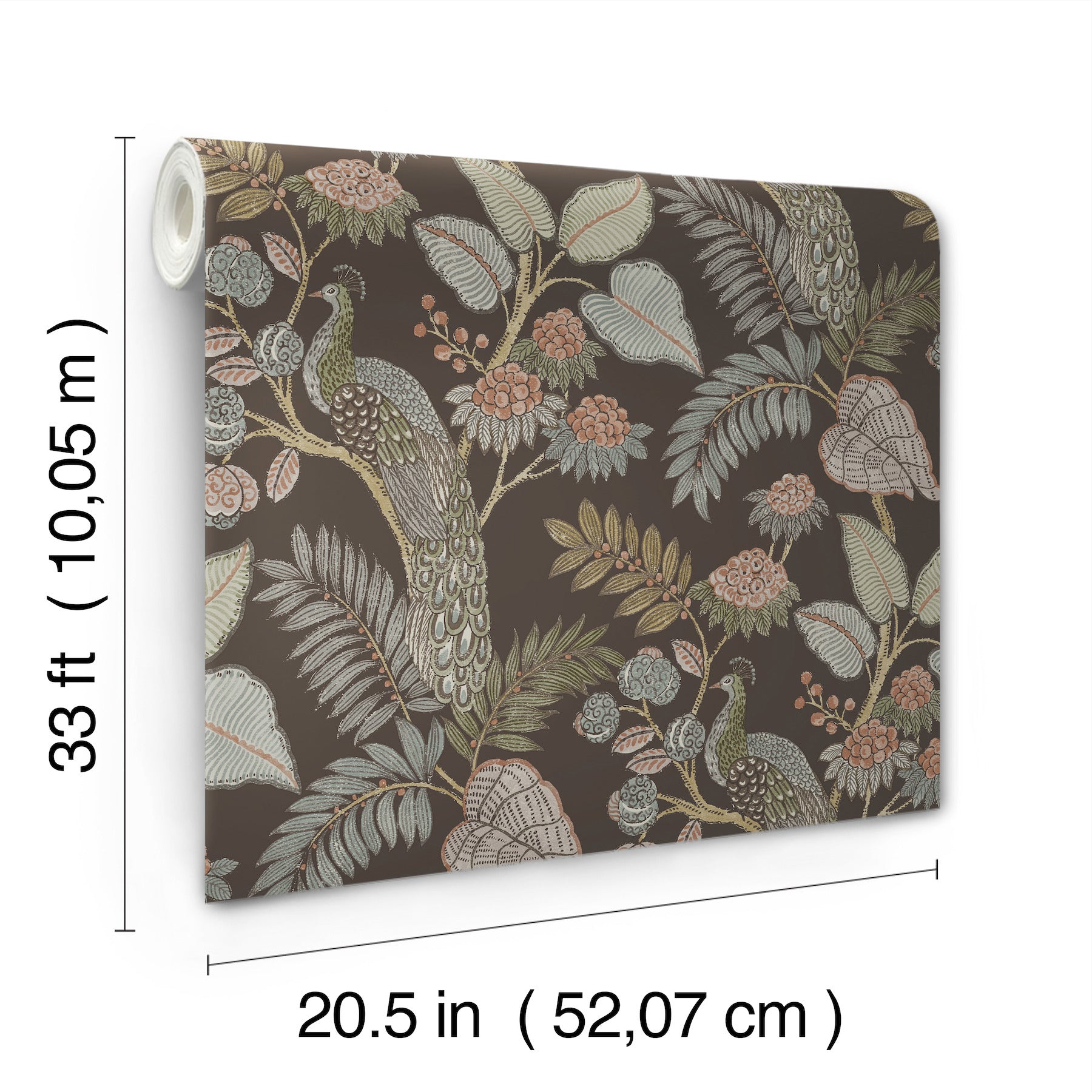 York Wallcoverings A-Street Prints Geneva Chocolate Peacock Paradise Wallpaper Animals Modern Chocolate Wallpaper - 4173-27647