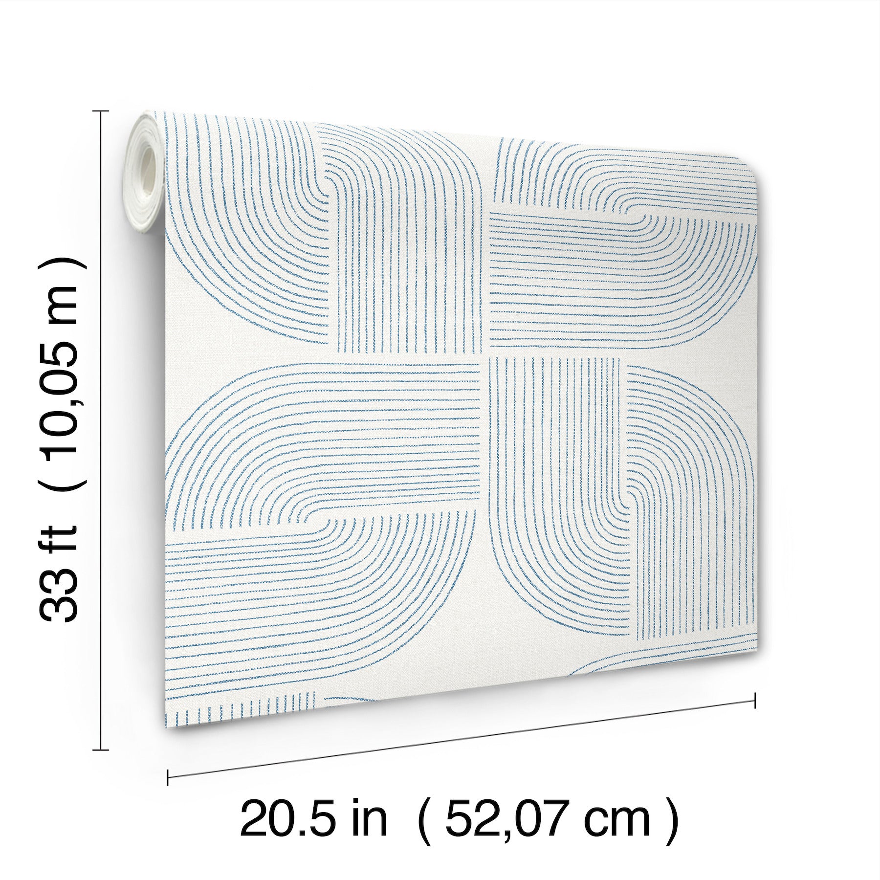 Use:The culmination of linear arches and the stars formed at their center lends Savoye retro flair and lived-in elegance. Featured here with dark blue linework against light grey. Savoye is an unpasted, non woven wallpaper measuring 20.5 inches wide by 33 feet long, covering approximately About 56.4 square feet square feet per roll. Unpasted non woven material; 20.9-in repeat, straight match; Washable and strippable; 20.5-in by 33-ft long roll; Covers about 56.4 square feet