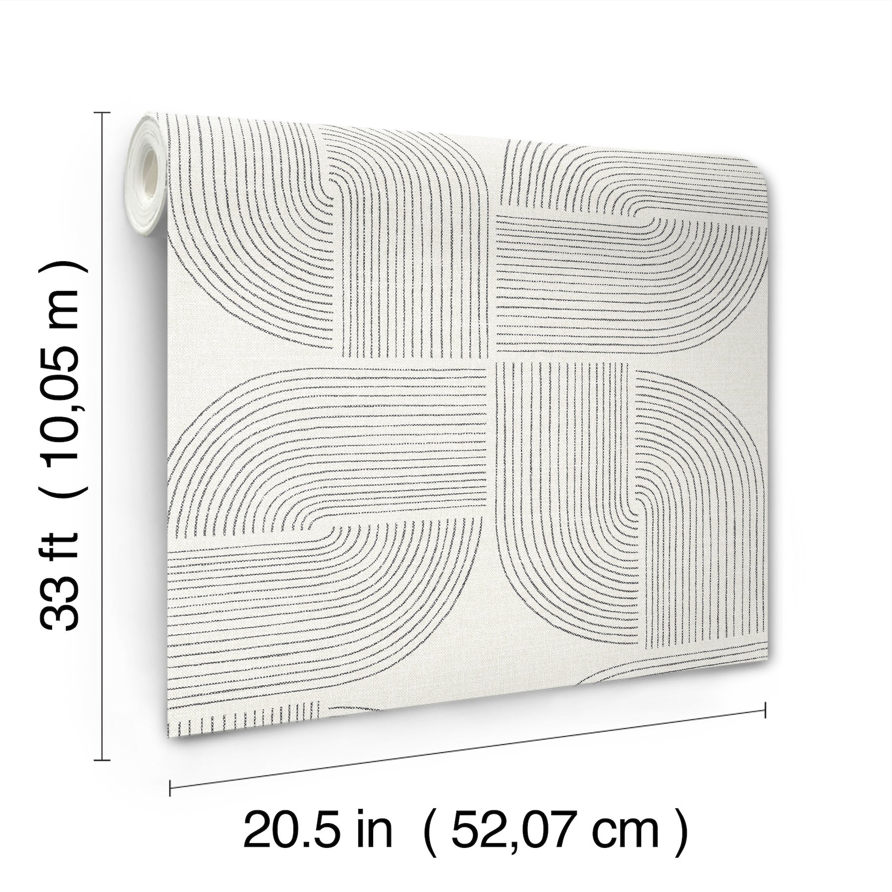 Use:The culmination of linear arches and the stars formed at their center lends Savoye retro flair and lived-in elegance. Featured here with black linework against grey. Savoye is an unpasted, non woven wallpaper measuring 20.5 inches wide by 33 feet long, covering approximately About 56.4 square feet square feet per roll. Unpasted non woven material; 20.9-in repeat, straight match; Washable and strippable; 20.5-in by 33-ft long roll; Covers about 56.4 square feet
