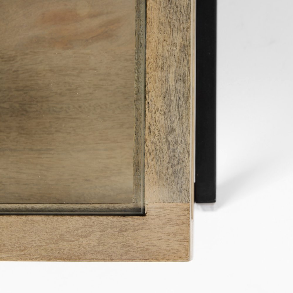 42" Clear and Black Glass and Metal Square Coffee Table With Two Drawers And Shelf