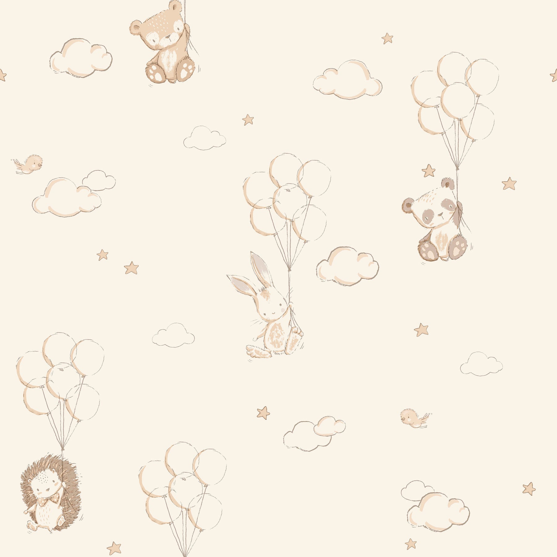Pattern: 4203-27556 / Floating Balloons Light Brown Animal Wallpaper