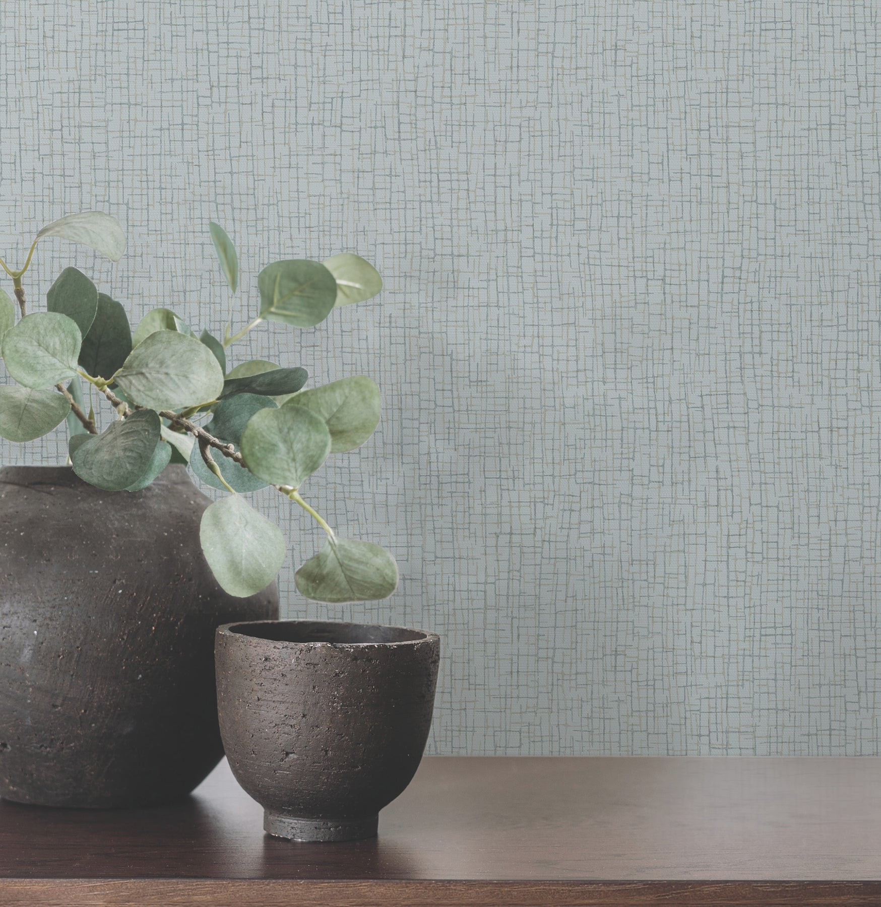 Use:Several layers of abstract, maze-like grids overlap to create simple intrigue in pattern Aden. Seen here with blue and taupe linework against light blue. Unpasted fabric backed vinyl material; No repeat, random match; Scrubbable and strippable; 27-in by 27-ft long roll; Covers about 60.8 square feet