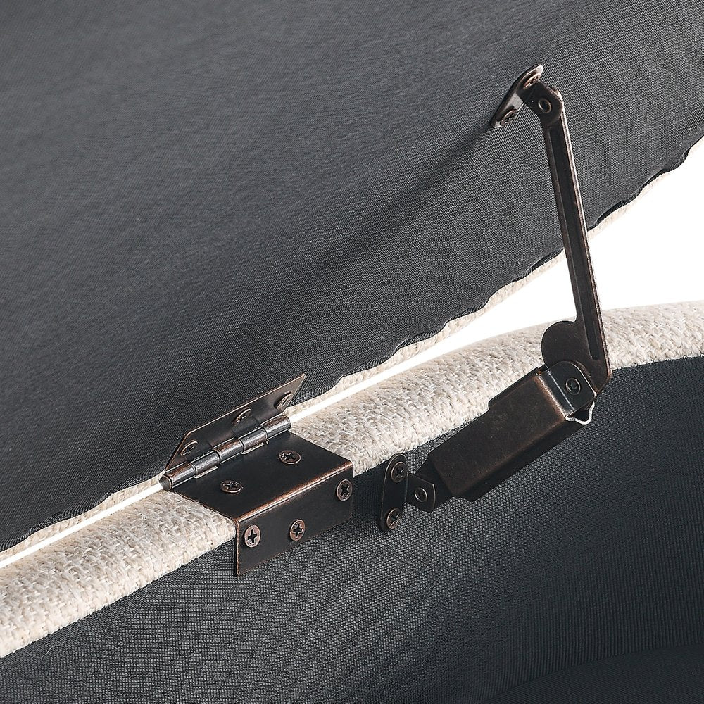 44" Beige and Brown Linen Upholstered Storage Bench with Flip Top