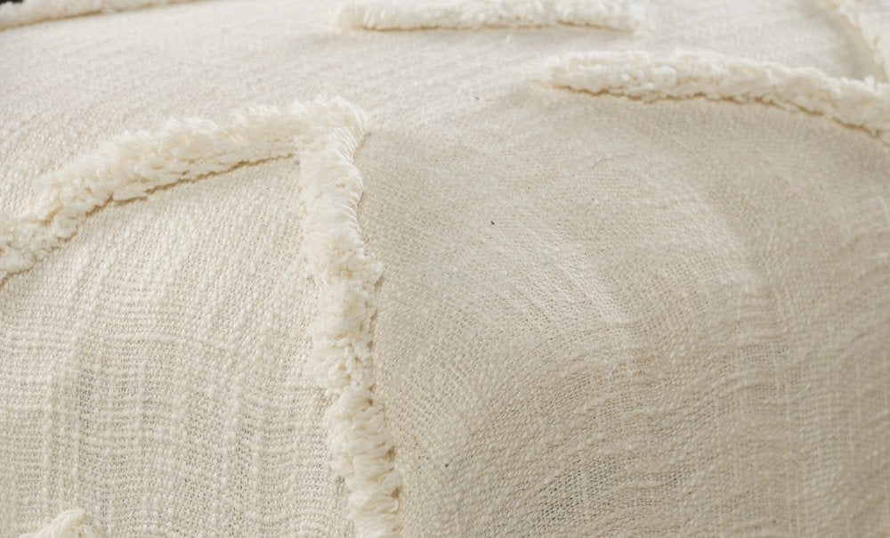 47" Cream and Black Cotton Upholstered Geometric Bench