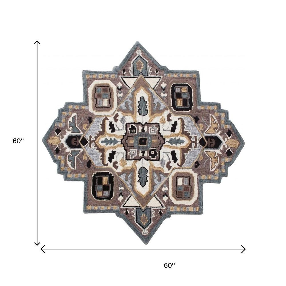 7' X 7' Blue And Red Wool Hand Tufted Area Rug