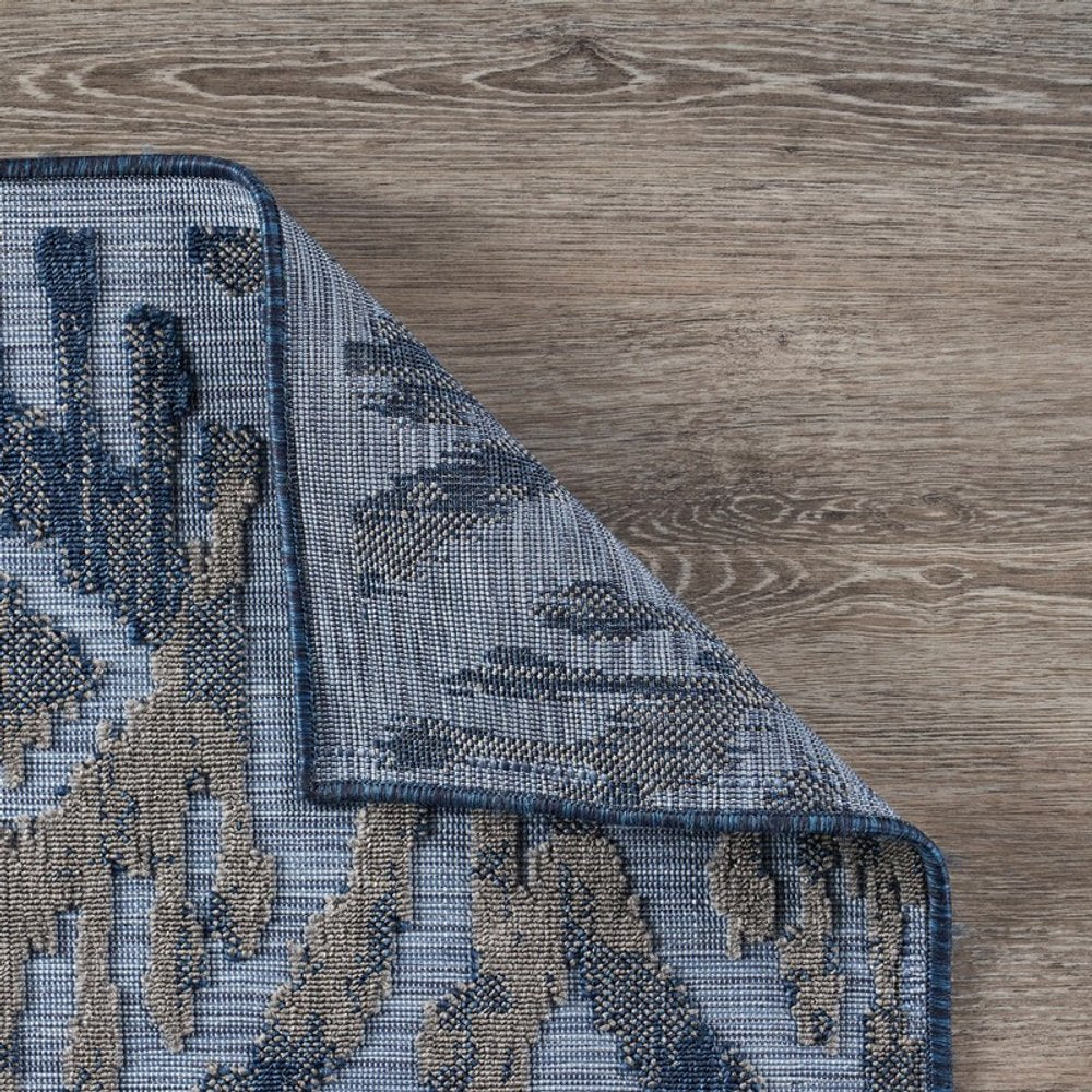 5' X 7' Blue And Yellow Indoor Outdoor Area Rug