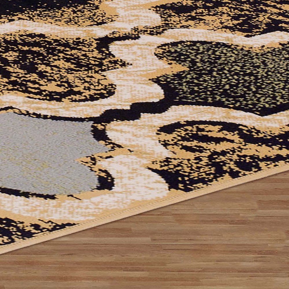 5' X 8' Black And Ivory Quatrefoil Distressed Area Rug