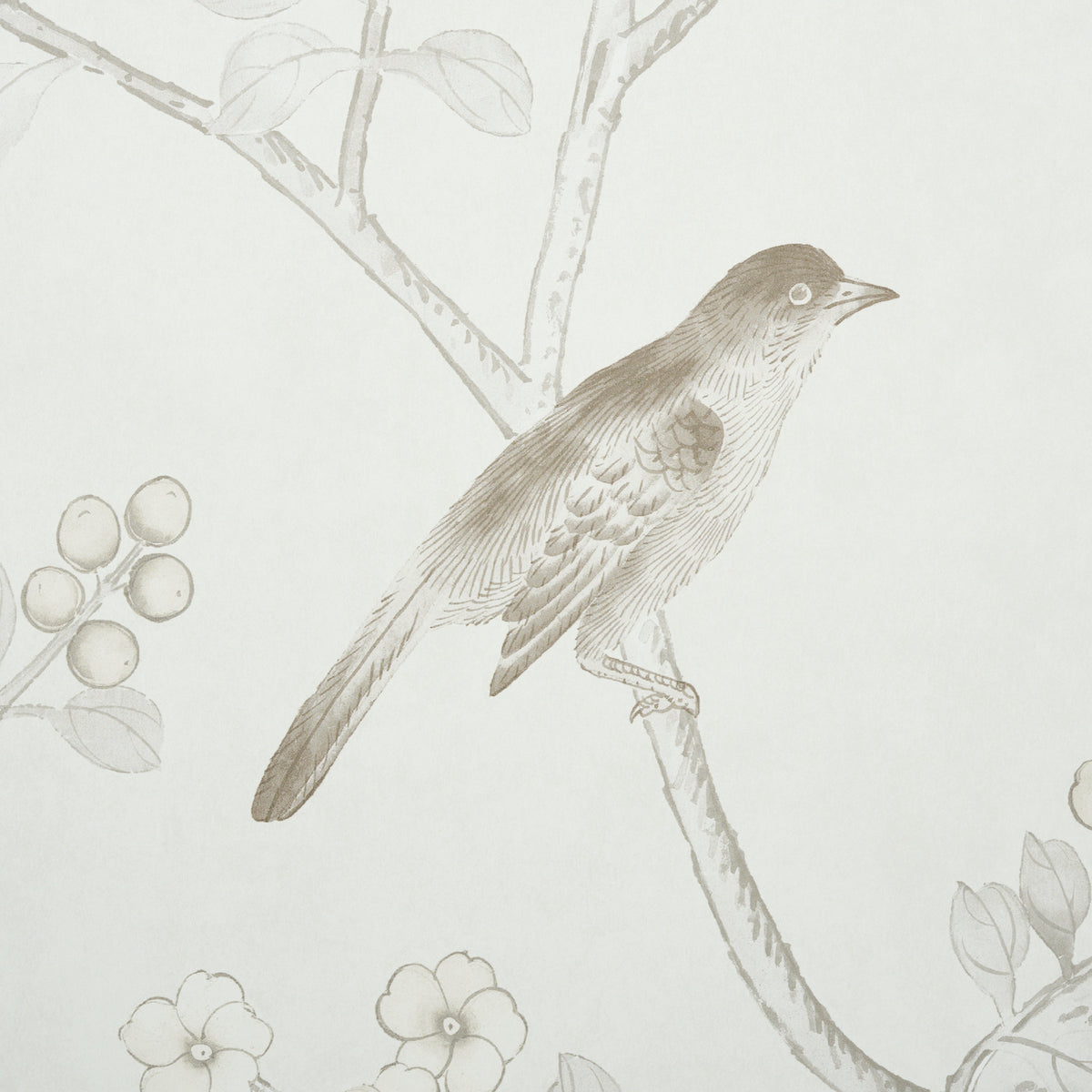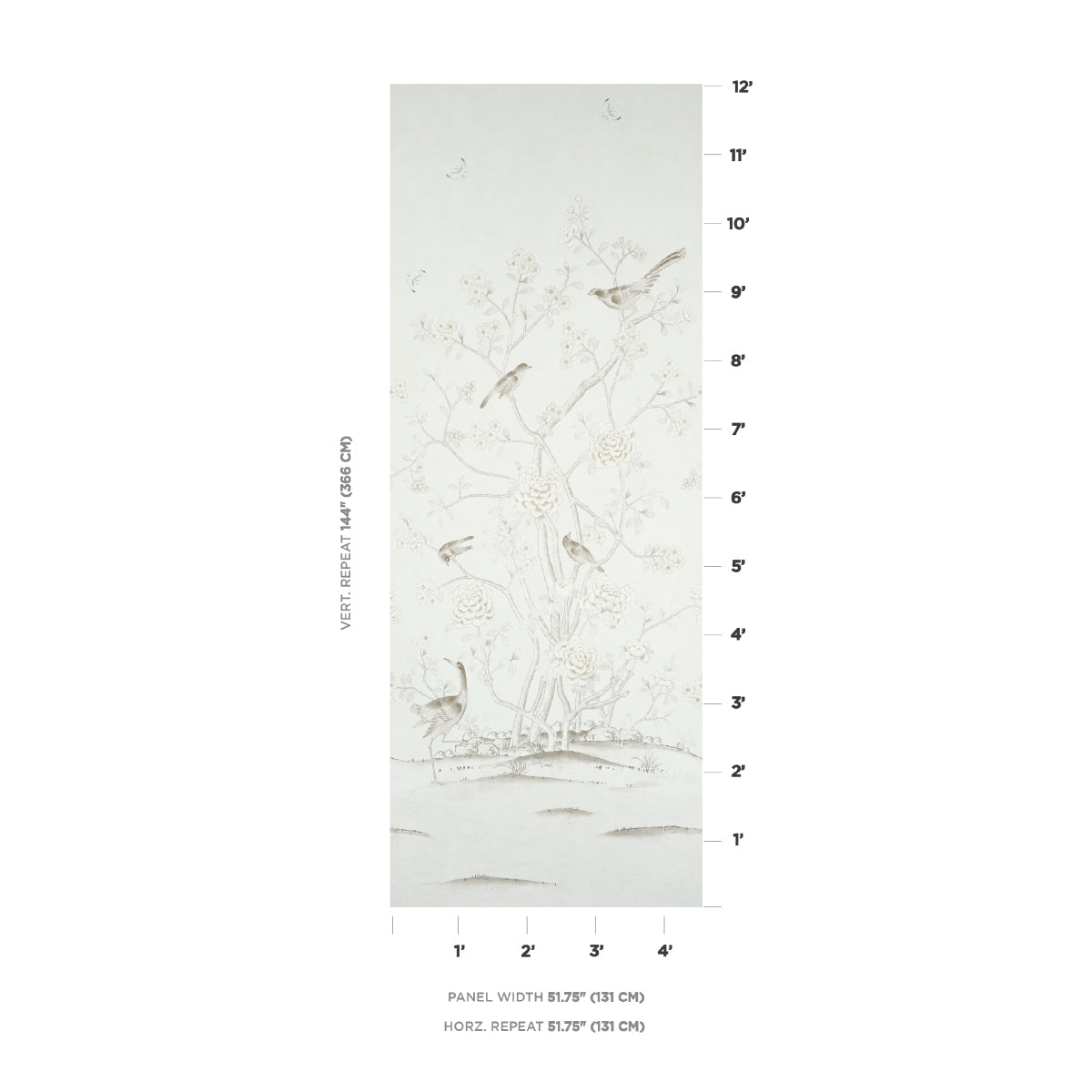 Use:Inspired by an antique Chinese silk panel, this Mary McDonald design in neutral features exotic birds and cherry blossoms on panels of wallpaper with a 12-foot repeat. Also available as a fabric.