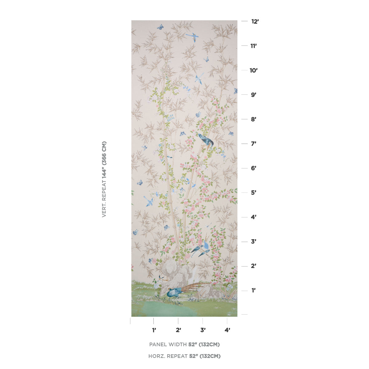 Repeat:VERT. 144" (366CM) HORIZ. 52" (132CM) inches
