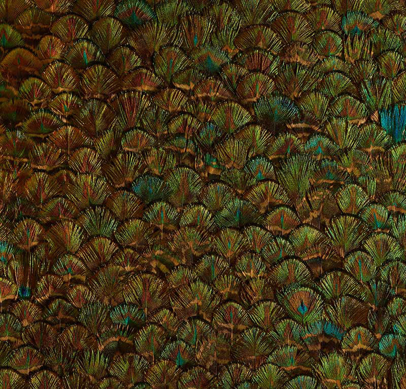 Use:With its rich, jewel tones, dense allover pattern and fabulous iridescent shimmer, Periot is the ultimate showstopper. Each panel of this opulent design is composed of natural feathers that are hand gathered and individually applied to craft a wallcovering that is truly magnificent and one of a kind.