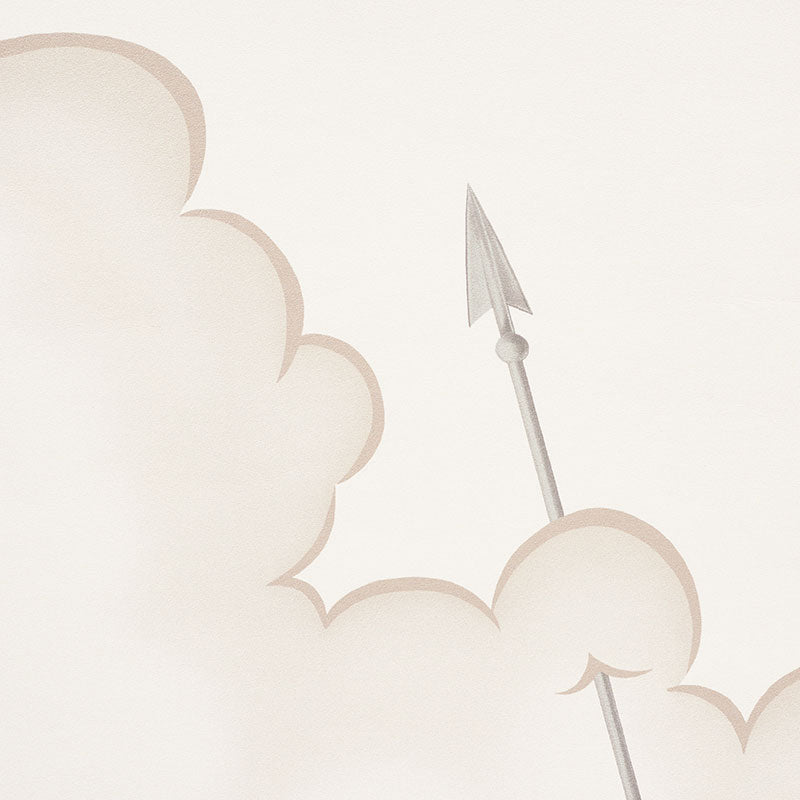 Use:With its sweeping, 54-inch wide repeat, this heavenly wallpaper depicts voluminous clouds pierced by Cupid's arrows. It has extraordinary dimension and a fabulous tonal effect.