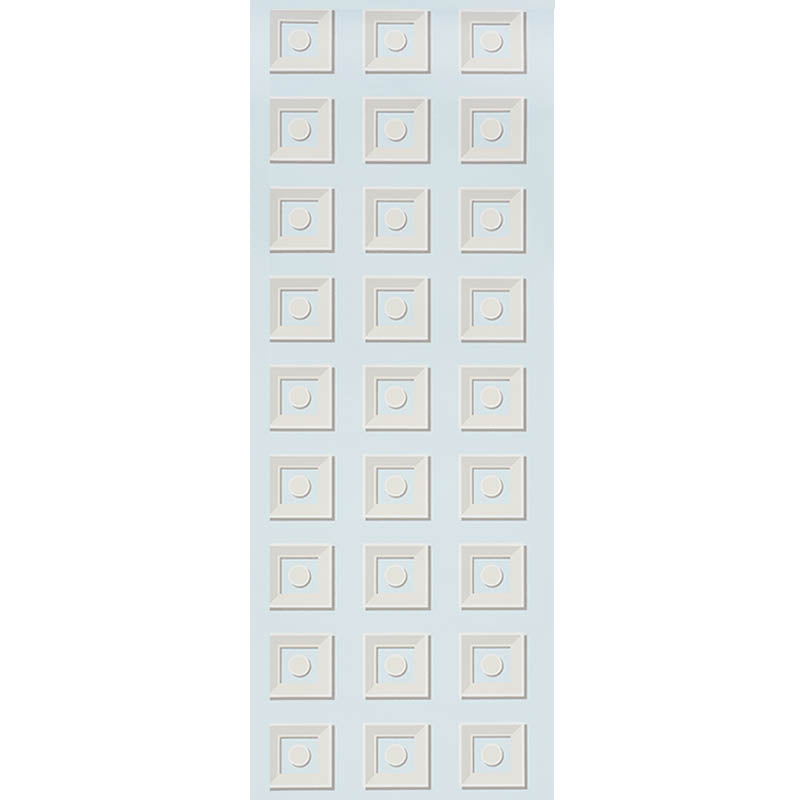 Use:This striking geometric design just begs for the ceiling. Stylized panels with black and white strokes playfully capture architectural detail in two dimensions.