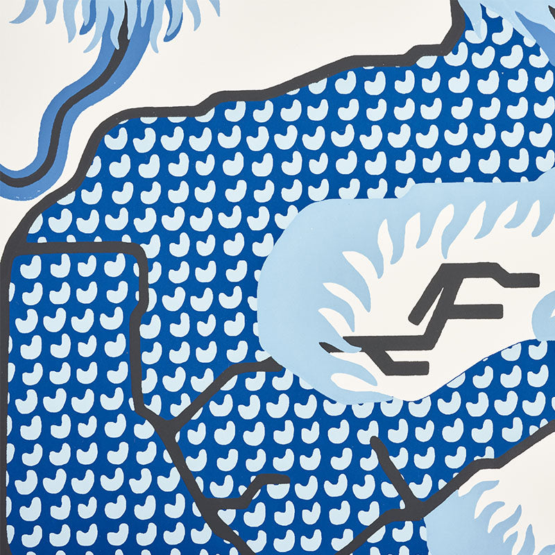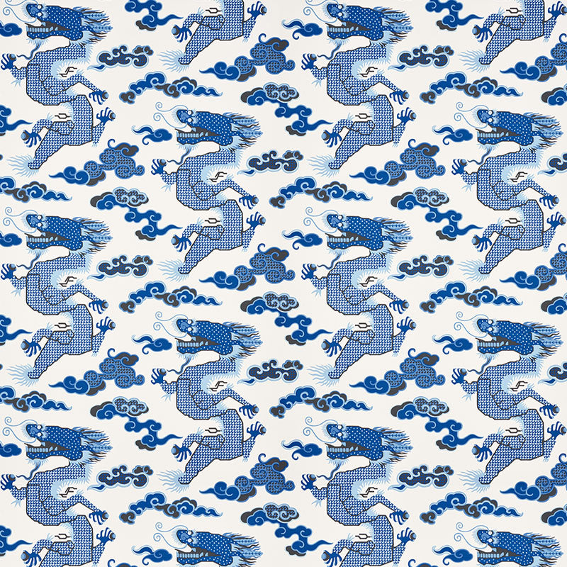 Use:Hand printed, stylized dragons are the centerpiece of this Tibetan-inflected wallcovering that's been rendered in a head-turning scale, complete with atmospheric clouds. Also available as a fabric.