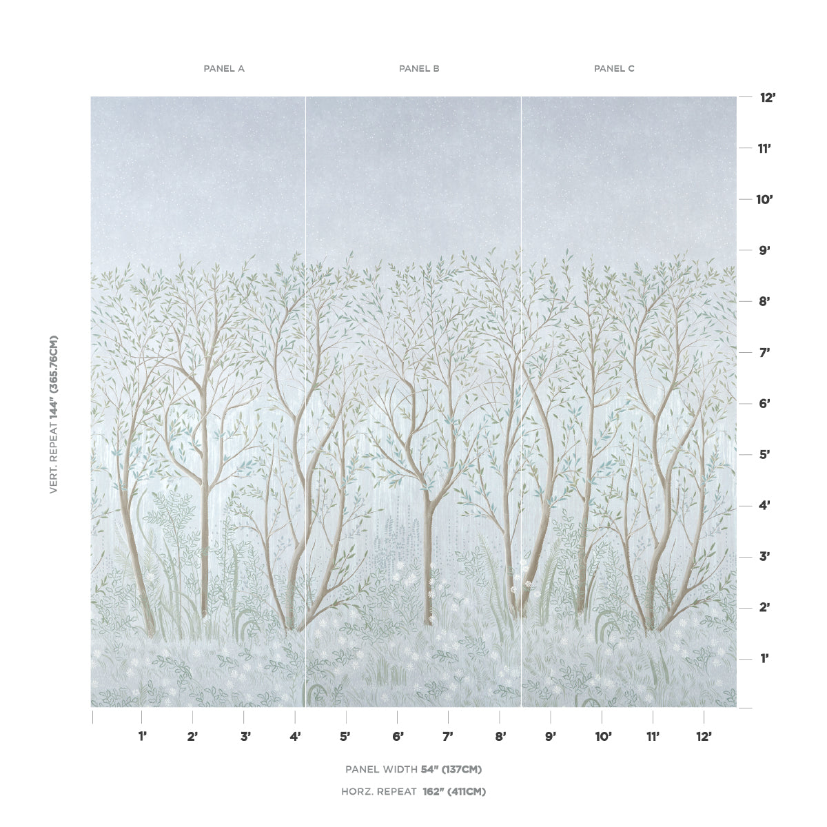 SCHUMACHER WALLCOVERING PANELS BRINDILLE GOLDEN ACCENTED PANEL SET MINERAL - 5010923