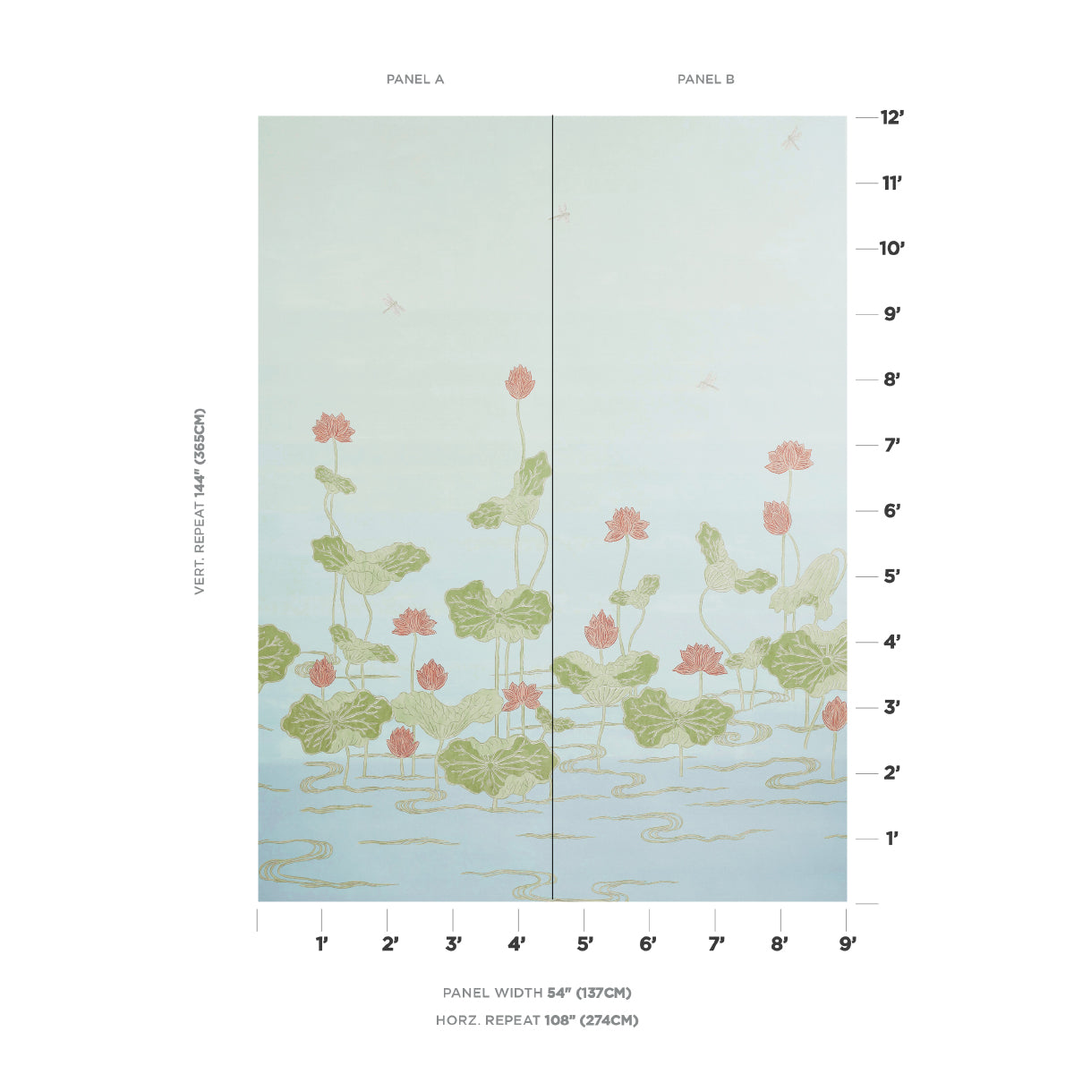 SCHUMACHER WALLCOVERING PERENNIAL FAVORITES KIREINA LOTUS PANEL SET MINERAL - 5011692